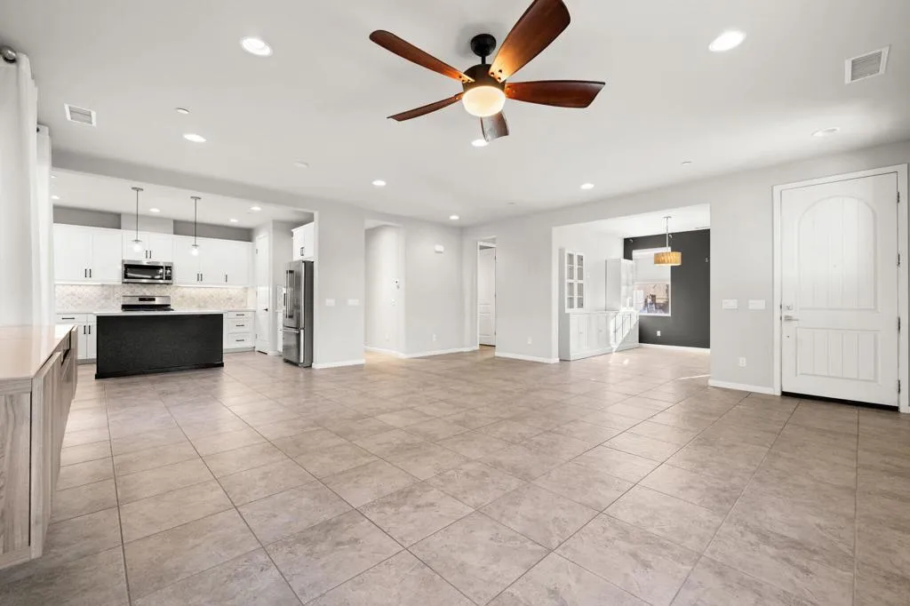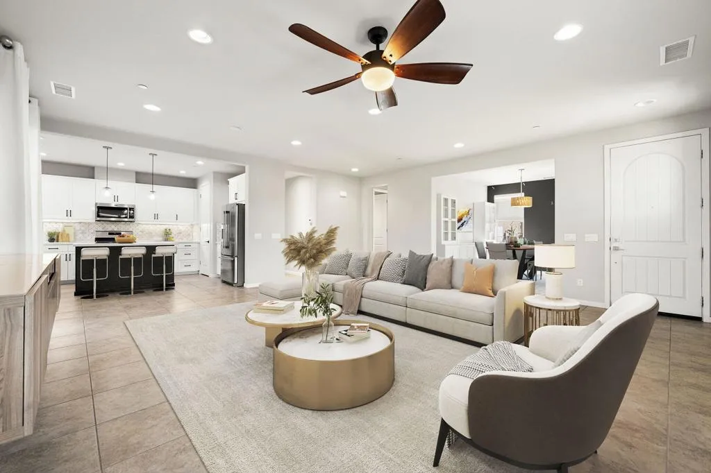 The Most AFFORDABLE Option in Genesis – A Modern Community Built by Local Award-Winning GHA. This Crisp and Clean Plan 1 Boasts 2BR’s + Bonus Room (which could be converted to a 3rd bedroom) on a Desirable Corner Lot. The User-Friendly Floor Plan Delivers a Functional Flow and has the Everything Today’s Buyers Covet; BRIGHT, AIRY and OPEN w/an Abundance of Natural Light. You’ll Appreciate the Generous Kitchen w/Island that Flows into the Great Room, Stainless Steel Appliances, Innovative Backsplash, Soaring Ceilings and a Soothing Neutral Palate of Colors Throughout. The Great Room Flows Seamlessly to the Outdoors, Complete with A Firepit, Conversation Area and Peek-a-Boo Mountain Views all with Zero-Maintenance Landscaping. Bedrooms are Adequately Spaced for Privacy and the Primary Suite features an Oversized walk-in Shower, Dual Vanities and a Walk-in Closet. Truly a Triple Option of Opportunity; a Primary Residence, a Vacation Getaway -or- a Fantastic Rental Opportunity that could be Ready for Revenue! Leased Solar System for Energy Efficiencies will need to be Assumed by Buyer(s). Low HOA includes Community Gate, Front Yard Maintenance, Community Pool/Spa, Fitness Center, Tranquil Walking Trails, Dog Park and Direct TV + Internet. BONUS: Centrally Located, Close to Restaurants, Shopping, Schools, Golfing, Acrisure Arena and I-10, which Makes Traversing the Entire Valley a Cinch!