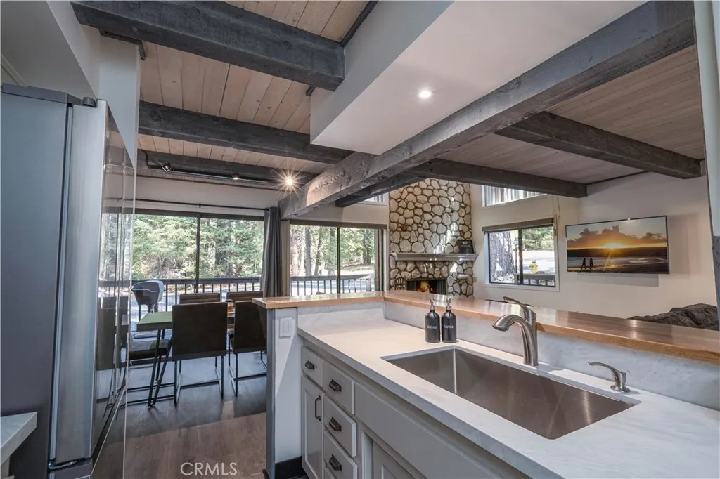 Fantastic Location & tastefully renovated! Perfectly positioned just steps from the National Forest and a short walk to Chair 2 at Snow Summit, this mountain condo places year-round adventure right outside your door—whether it’s winter ski days or summer mountain biking and hiking. Skip the parking hassle and enjoy easy access to the slopes and trails, making it ideal for both owners and guests. Inside, the spacious primary bedroom features its own private bathroom, while the guest bedroom is thoughtfully designed with two sets of bunk beds—perfect for hosting family or friends. The open living & dining areas flow comfortably into the kitchen and breakfast bar, creating a relaxed space to gather after a day outdoors. Unwind by the floor-to-ceiling rock fireplace while enjoying peaceful forest views, or step outside to the patio and fire up the grill to take in the crisp mountain air. You’ll appreciate the thoughtful updates and charming atmosphere of this Condo by the slopes! Escape Condos offers on-site property management for those interested in vacation rental income, adding convenience and flexibility for ownership. All of this is just minutes from Big Bear Lake, the Village, shopping, dining, and public transportation—making this a well-rounded mountain retreat that’s easy to enjoy in every season.