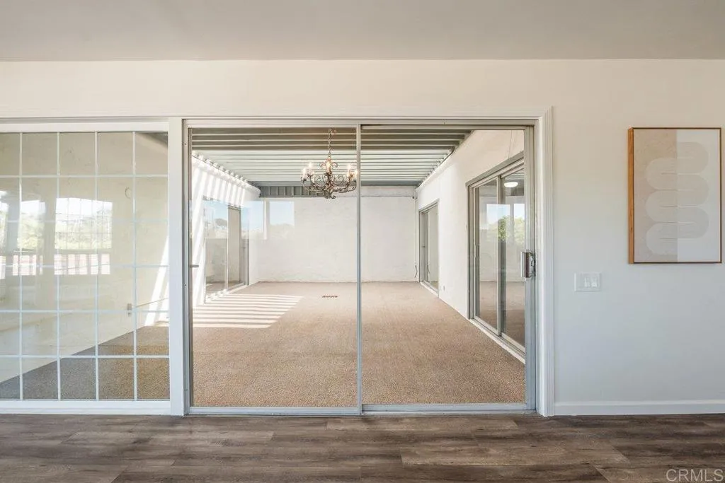 Welcome to this beautifully upgraded single-story residence in the desirable Oceana 55+ community. This charming home features laminate flooring, a modern kitchen with Corian counters, stainless steel appliances and custom backsplash, a spacious living room with large balcony, updated bathrooms, plus a front patio with HOA-approved fencing that creates a private outdoor space. The office can easily be converted into a 3rd bedroom and the enclosed atrium/courtyard offers endless possibilities—perfect for a sunroom or hobby area. Conveniently located near the community entrance and clubhouse, as well as being adjacent to the Emerald Isle Golf Course. Enjoy resort-style amenities including multiple pools, clubhouse, billiards, card and computer rooms, pickleball courts, and more. The HOA covers trash pick-up, and water and sewer are included, adding convenience and peace of mind. Ideally located near the Sprinter station, shops, restaurants, and freeways, this home offers the perfect blend of comfort, convenience, and active coastal living.