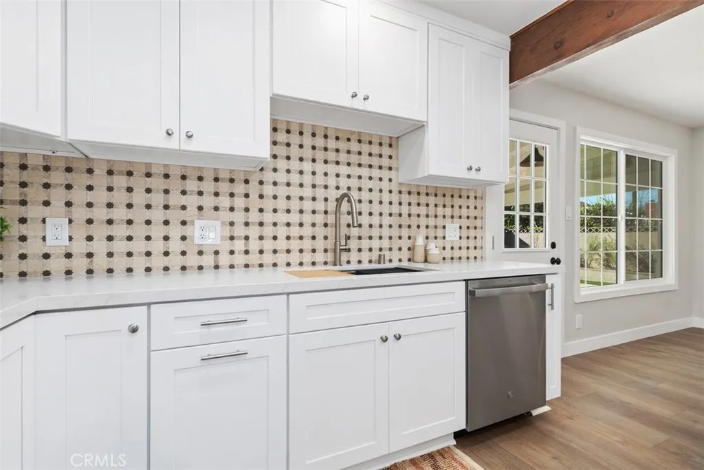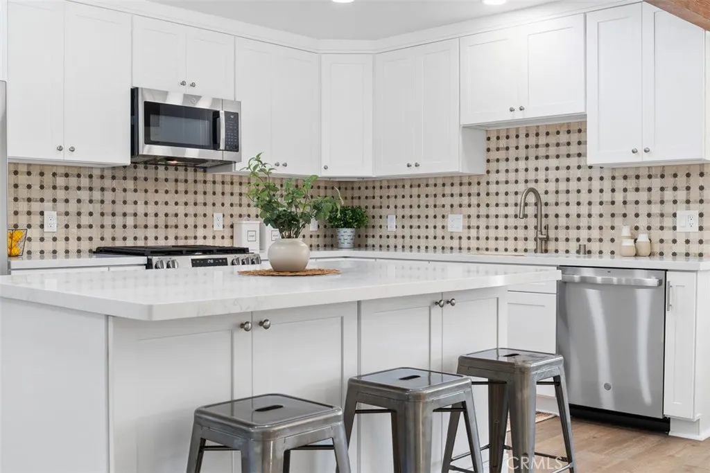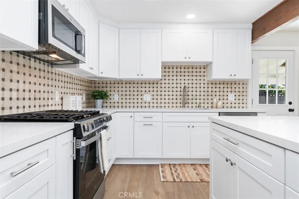 Welcome to this beautifully upgraded single-story home located in a highly desirable neighborhood, known for its quiet streets, privacy, and central location. Conveniently situated near major freeways, shopping, and dining, this home offers both comfort and everyday ease. The home features 3 bedrooms, 2 bathrooms, and approximately 1,379 square feet of well-planned living space. Inside, you’ll find luxury vinyl plank flooring, energy-efficient windows, neutral and light paint colors, and a warm, inviting layout. The kitchen is thoughtfully designed with white shaker cabinetry, quartz countertops, a center island, and a brand-new GE appliance package with a 1-year limited warranty. The bedrooms are comfortably sized and include ceiling fans, carpeted floors, and mirrored sliding closet doors. The primary bedroom features a private bathroom, and both bathrooms have been updated with tile flooring, coordinating white shaker cabinetry, and updated countertops. The guest bathroom includes a tub/shower combination. Additional highlights include a fireplace in the main living area, storage cabinetry, a 2-car garage with driveway, epoxy-coated garage floors, and washer and dryer hookups. The outdoor space has been professionally designed and is ready to be enjoyed with minimal maintenance. The backyard features a covered patio, artificial turf, decomposed granite, and drought-tolerant landscaping on water lines. The front yard includes a charming herb garden, adding both character and function to the home. With its thoughtful upgrades, efficient layout, and convenient location, this move-in-ready home offers a wonderful opportunity in a quiet and centrally located Gardena neighborhood.