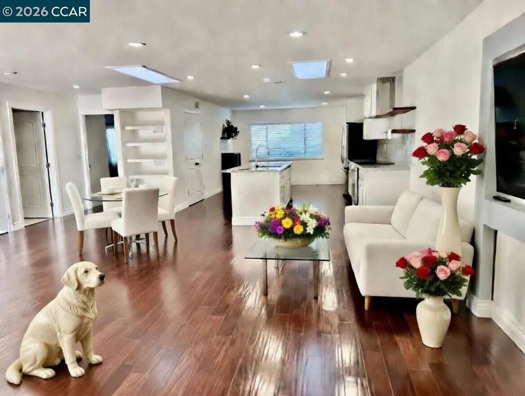 NEW PRICE $635K! UPDATED & EXPANDED LEVEL-IN SAN FRANCISCAN IN ROSSMOOR! Bright, Accessible & Move-In Ready, this thoughtfully expanded San Franciscan model offers 1,330 sq ft of comfortable, open living space. Designed for effortless living, the home features true level-in access from carport to private front yard to home-ideal for easy furniture arrangement & wheelchair accessibility. Enjoy nearly 300 sq ft of private outdoor space with a newly installed wood fence, paved & tiled patio, electrical outlet & water faucet. The lush courtyard & community laundry room lie just beyond. Inside, 2 skylights & double-pane east-facing windows flood the home with natural light. Premium engineered wood flooring throughout provides a luxurious feel while being easy to maintain. The standout kitchen boasts a large 88 sq ft reoriented quartz island with sink & dishwasher, plus a stylish stainless steel exhaust hood & stove. Bath features include quartz countertops, shower over jacuzzi tub & stacked washer/dryer. Upgrades from 2015 include interior wood blinds, baseboards, water heater, central A/C & furnace. This bright, accessible home combines modern comfort, outdoor living & low maintenance luxury in one of Rossmoor’s most popular models! Remodeled blueprint available.