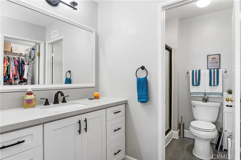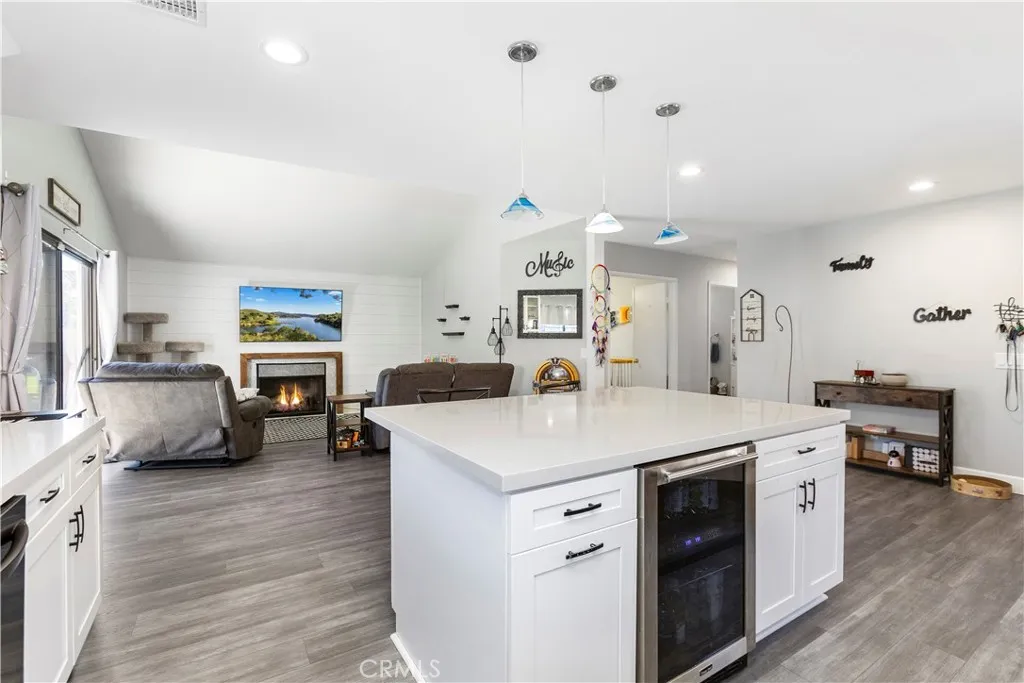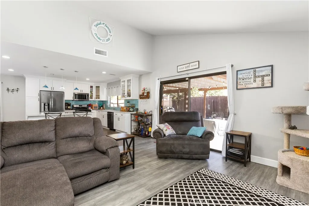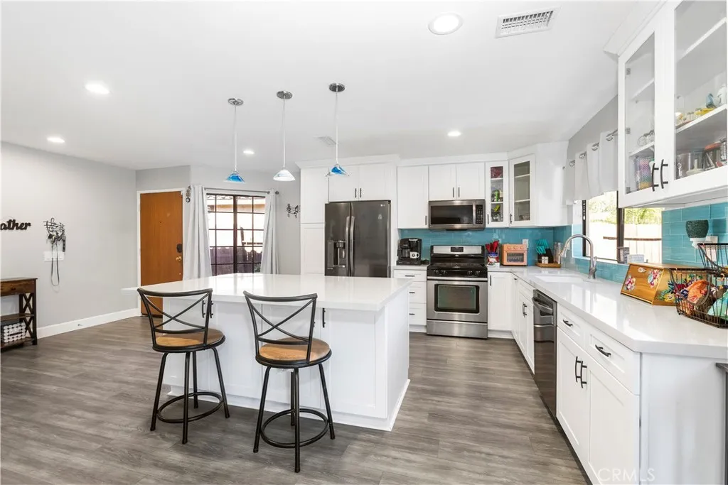 Charming single story 3 bed 2 bath with attached two-car garage home located in the desirable community of Las Casitas. The moment you enter the home, you’ll be greeted with an open-concept layout with vaulted ceilings and luxury vinyl flooring throughout. Newly remodeled kitchen island with quartz counter top, upgraded white shaker cabinets with plenty of space for storage. Enjoy new stainless steel appliance, new refrigerator, dishwasher, microwave and beverage refrigerator, upgraded tile back splash and a beautiful porcelain sink. On cooler nights, turn on the fireplace and get cozy while watching your favorite shows. Both bathroom vanities have been beautifully upgraded to white shakers allowing a cohesive look throughout the home. Primary master bedroom offers a sliding door that leads to your very own private courtyard and a walk in closet. Enjoy an easy low maintenance yard with a covered patio. Residents benefit from low HOA fees, providing access to well-maintained common areas, a refreshing pool and spa, and an exclusive-use dog park. Conveniently located near hiking trails, shopping centers, freeway entrance and the beautiful Dixon Lake.