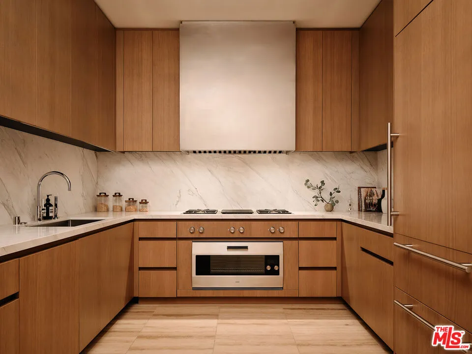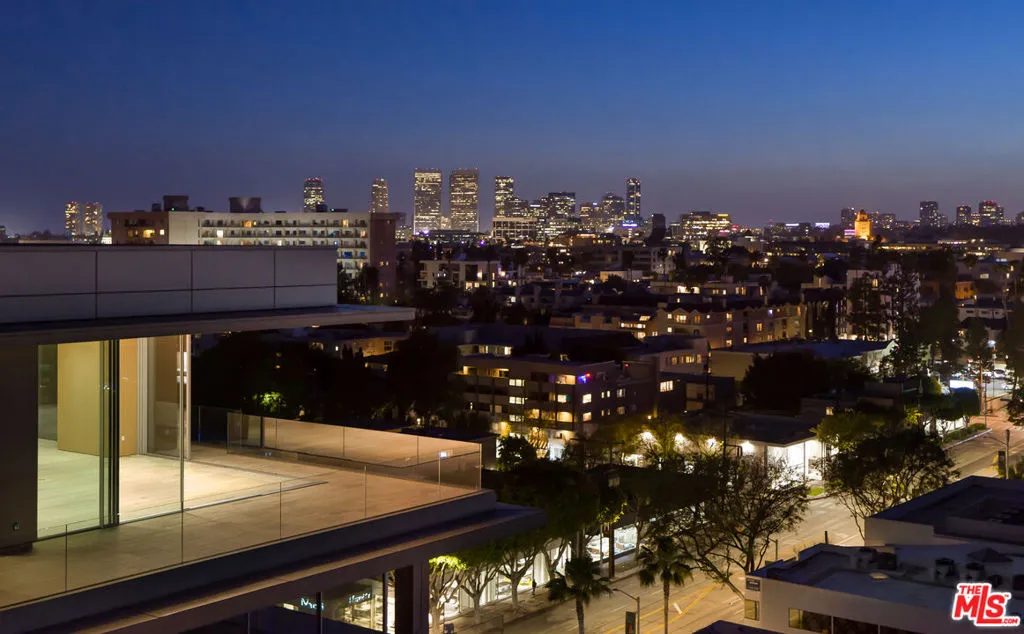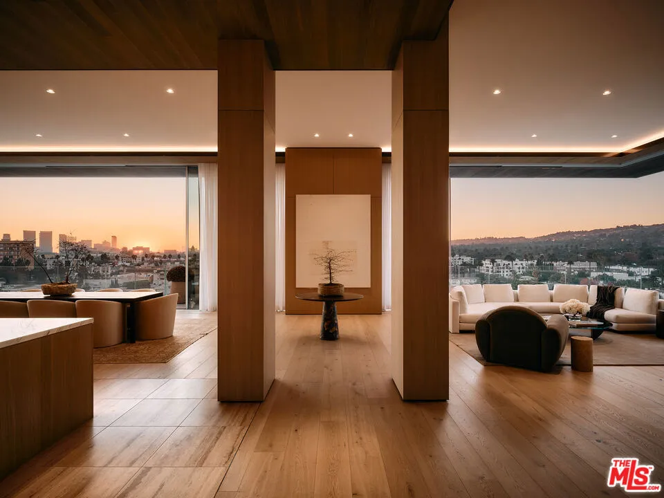 Introducing Penthouse West at 8899 Beverly – the largest top-floor residence in this Olson Kundig-designed architectural masterpiece in West Hollywood’s Design District. This sprawling 7,303-square-foot penthouse is an art collectors dream. Experience full-service, luxury living with 4 bedrooms, 5 full bathrooms, 2 powder rooms, and a versatile media room set up as private office space apart from the main residence living areas. Designed to impress, the Penthouse features a great room with soaring 14-foot floor-to-ceiling motorized Vitrocsa glass walls that open to a 1,900-square-foot wraparound terrace with breathtaking, panoramic views of the Hollywood Hills and Los Angeles skyline. The gourmet kitchen pairs functionality with artistry, boasting Calacatta gold marble countertops, custom white oak cabinetry, and premium appliances by Gaggenau, Miele, and Subzero. A separate butler’s kitchen and discreet service entrance enhance the penthouse’s hosting capabilities, ideal for entertaining at scale or enjoying intimate gatherings. The expansive primary suite, a private sanctuary over 1,000 square feet, includes dual walk-in closets, luxurious dual bathrooms, and direct access to the terrace, offering uninterrupted views of the Hollywood hills. The three guest bedrooms feature ensuite bath and stunning south-facing views, providing the utmost privacy and comfort. For the car aficionado, Penthouse West features a private four-car autostable behind bespoke enclosed doors, plus two additional valet spaces, accommodating up to six vehicles. A private and discreet Penthouse lobby in the garage offers direct elevator access to the top floor. Exclusive resident amenities elevate the experience further, with a resort-style pool, outdoor kitchen, fireplace gardens, fitness center, and yoga studio. Situated in the heart of the West Hollywood Design District, this penthouse boasts a Walk Score of 92, with Bristol Farms, high-end dining, designer boutiques, and entertainment just steps away, delivering an unparalleled lifestyle in one of LA’s most coveted and walkable neighborhoods.