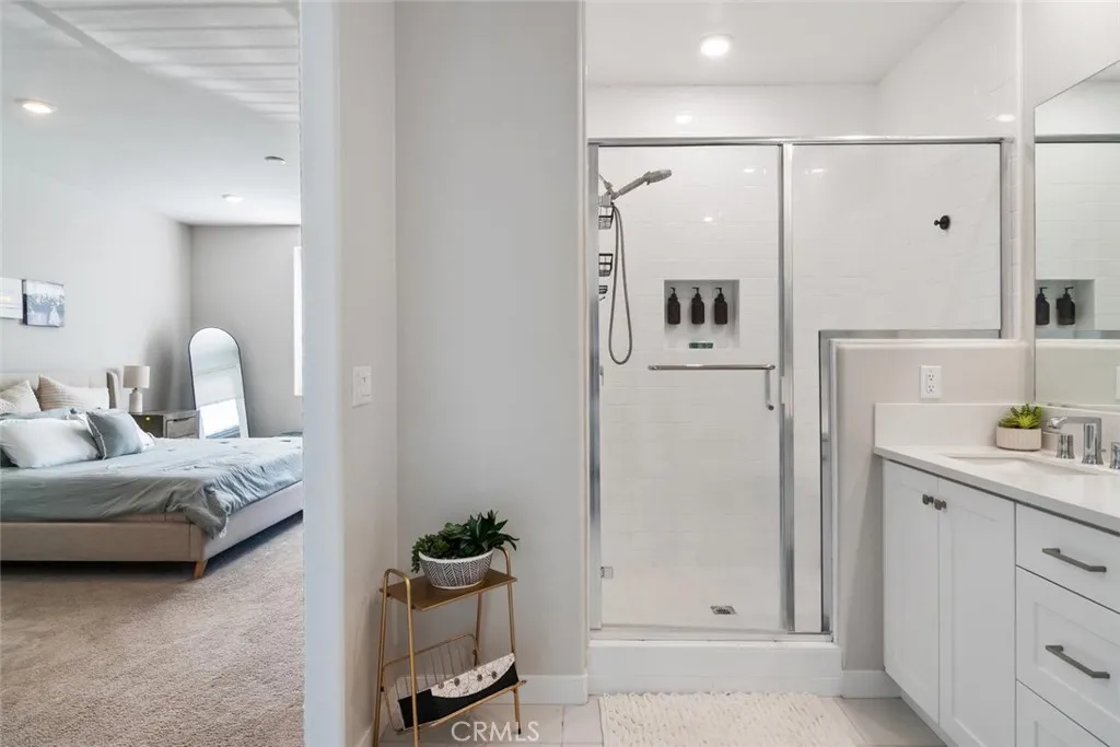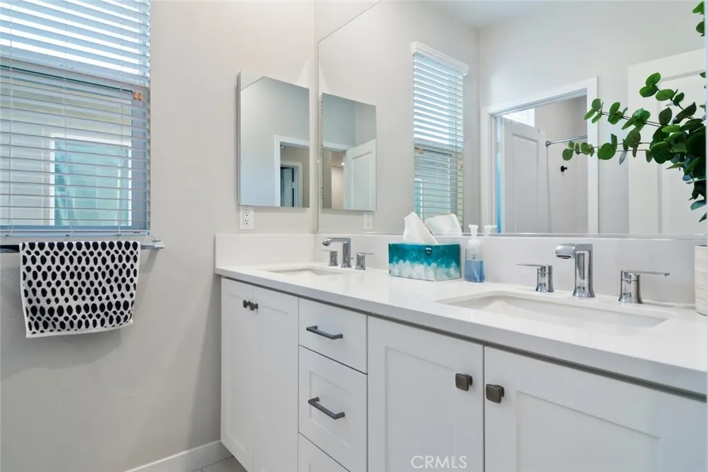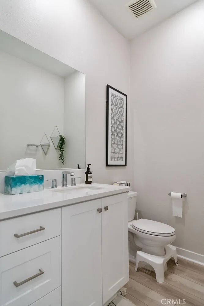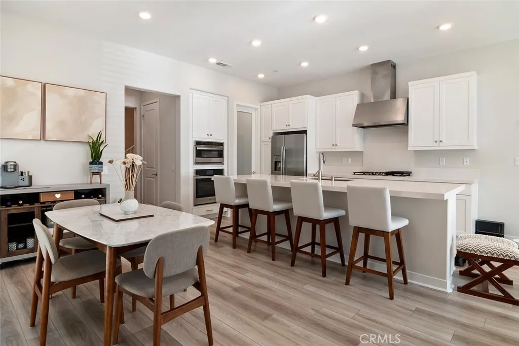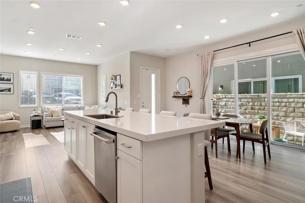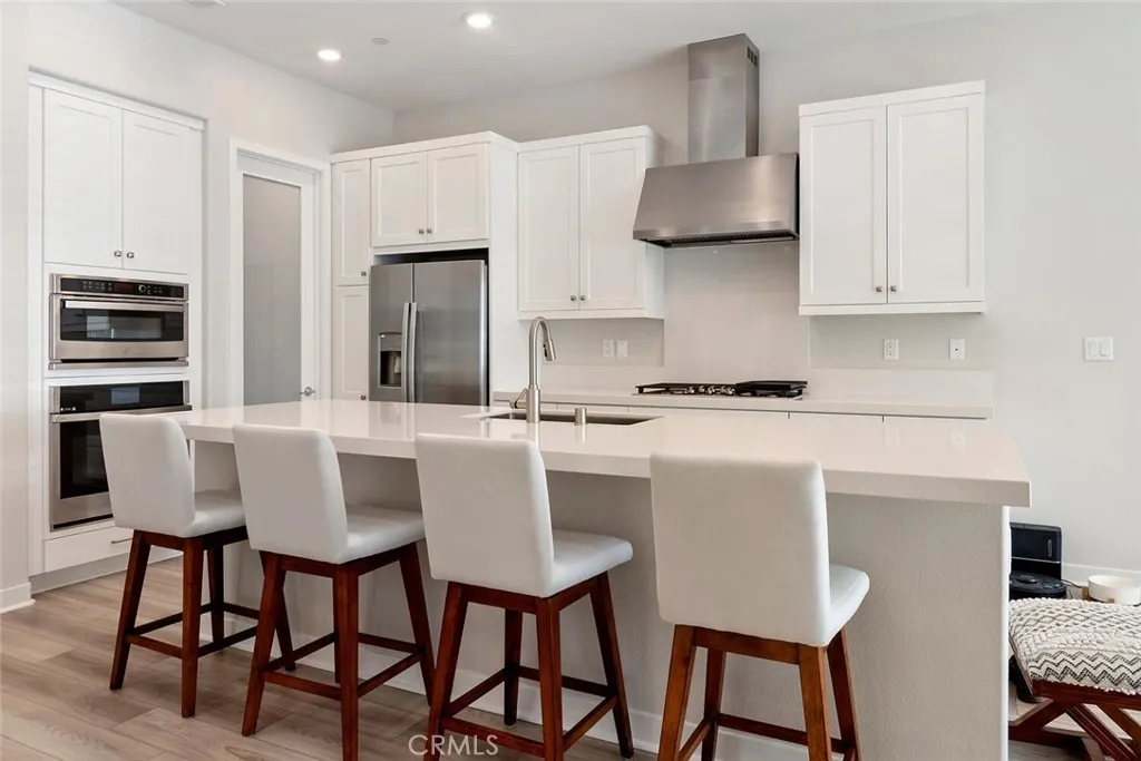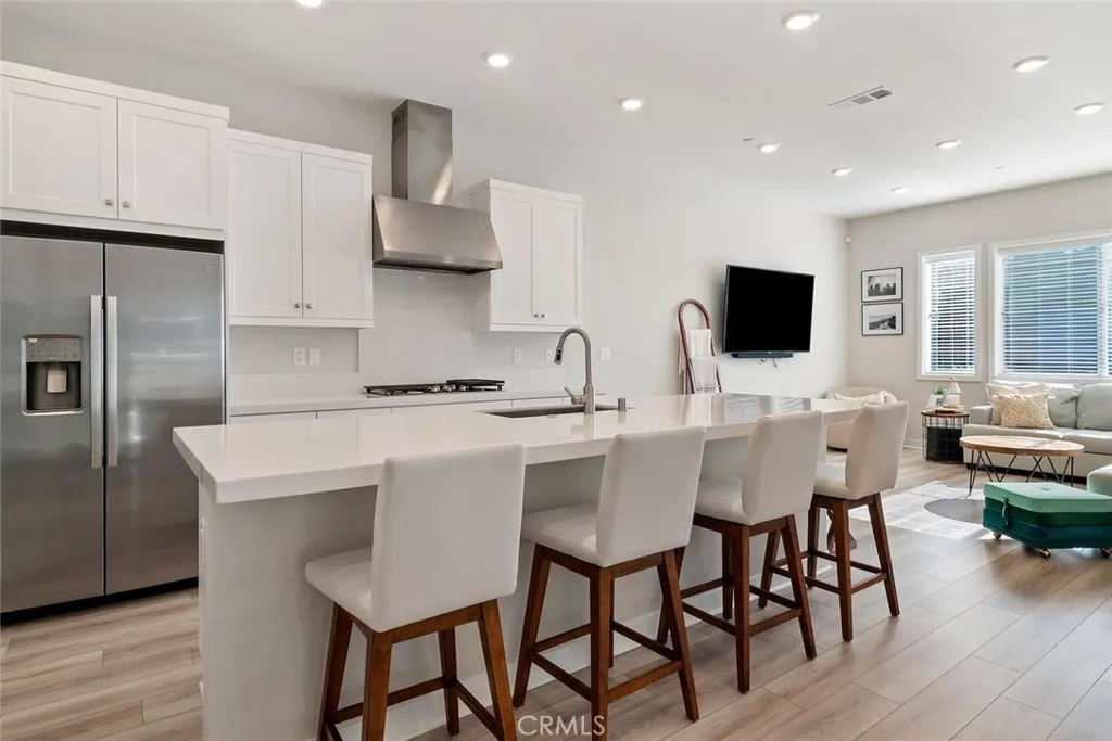 At the heart of the home, the upgraded kitchen invites connection—whether you’re hosting friends, helping with homework at the island, or enjoying quiet mornings at home. Quartz countertops, stainless steel appliances, a large center island, and a walk-in pantry make this space as functional as it is stylish. Enjoy a private walk-out patio off the dining room area—ideal for weekend BBQs. The patio is equipped with a gas line, making it perfect for hosting or relaxing while enjoying Southern California evenings. A convenient downstairs powder room adds ease for guests