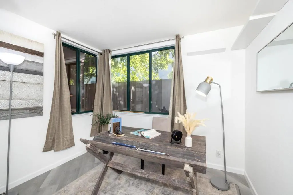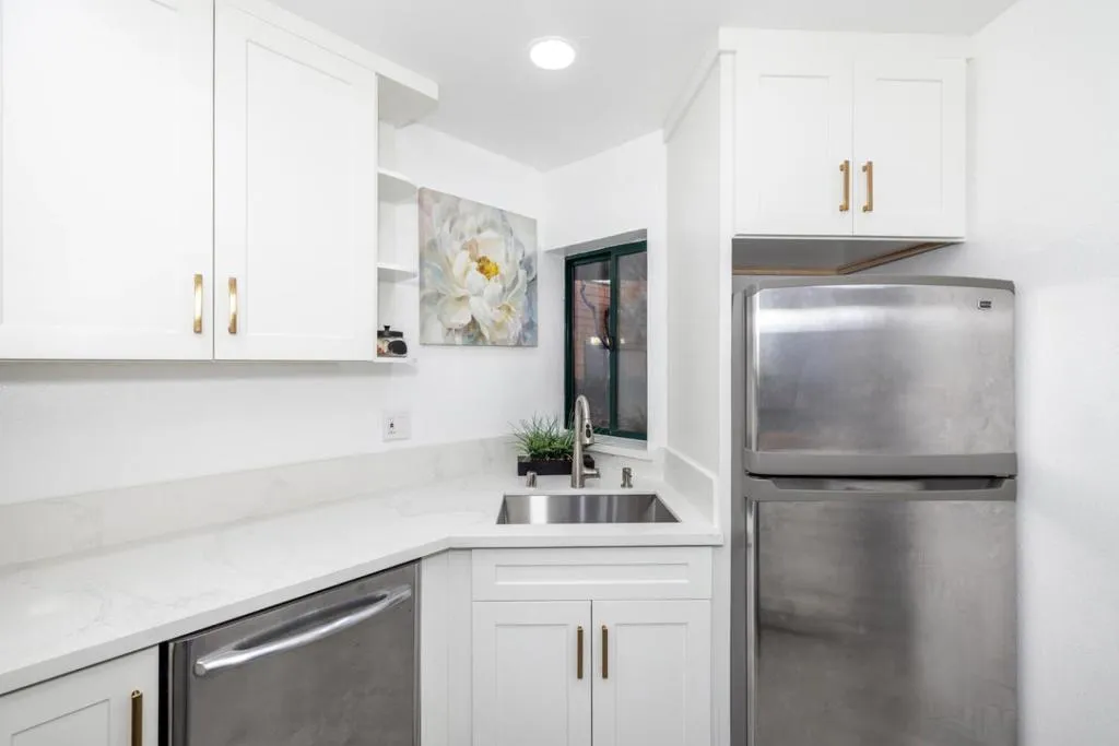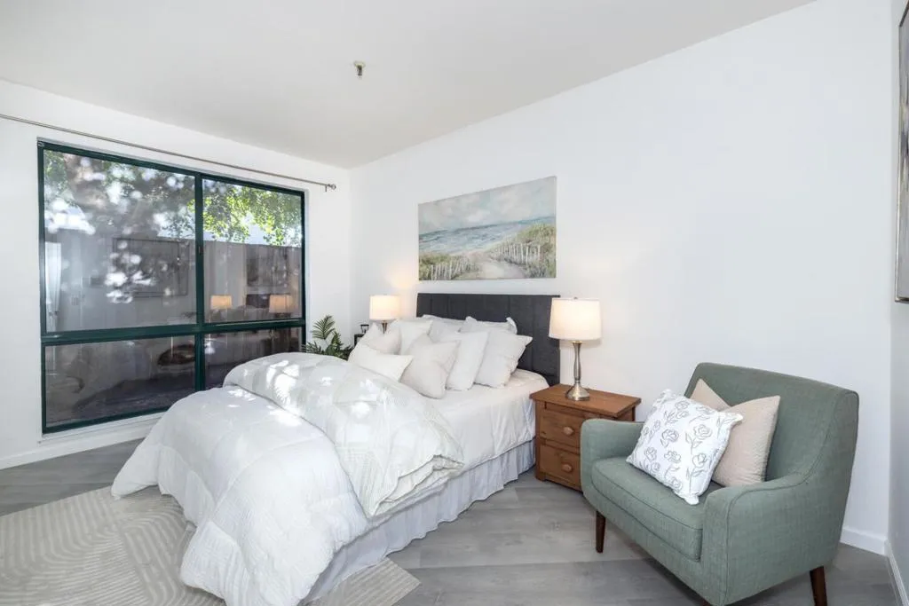 Welcome home to this beautifully remodeled and freshly painted condo in the heart of vibrant Palo Alto. Thoughtfully designed for comfort and convenience, this ground-floor residence features two bedrooms and a full bath, quietly tucked away at the back of the complex for added privacy.The modern kitchen is both stylish and functional, with sleek quartz countertops, stainless steel appliances, and an exhaust fanperfect for everything from quick weekday meals to weekend entertaining. The open-concept living and dining area centers around a cozy fireplace, creating a warm and inviting atmosphere for gatherings or quiet evenings in. Durable tile and luxury vinyl plank flooring run throughout the home, offering both easy upkeep and contemporary appeal. A private patio provides the ideal spot for morning coffee or unwinding after a long day, while a dedicated washer and dryer make daily routines a breeze. Youll also appreciate the storage unit, secure underground parking (just steps from the elevator), and guest parking for visitors. Enjoy resort-style amenities including a pool, relaxing spa/hot tub, and a welcoming community facility. Blending modern updates with everyday comfort, this move-in-ready condo offers the best of Palo Alto livingpeaceful, practical, and perfectly located.