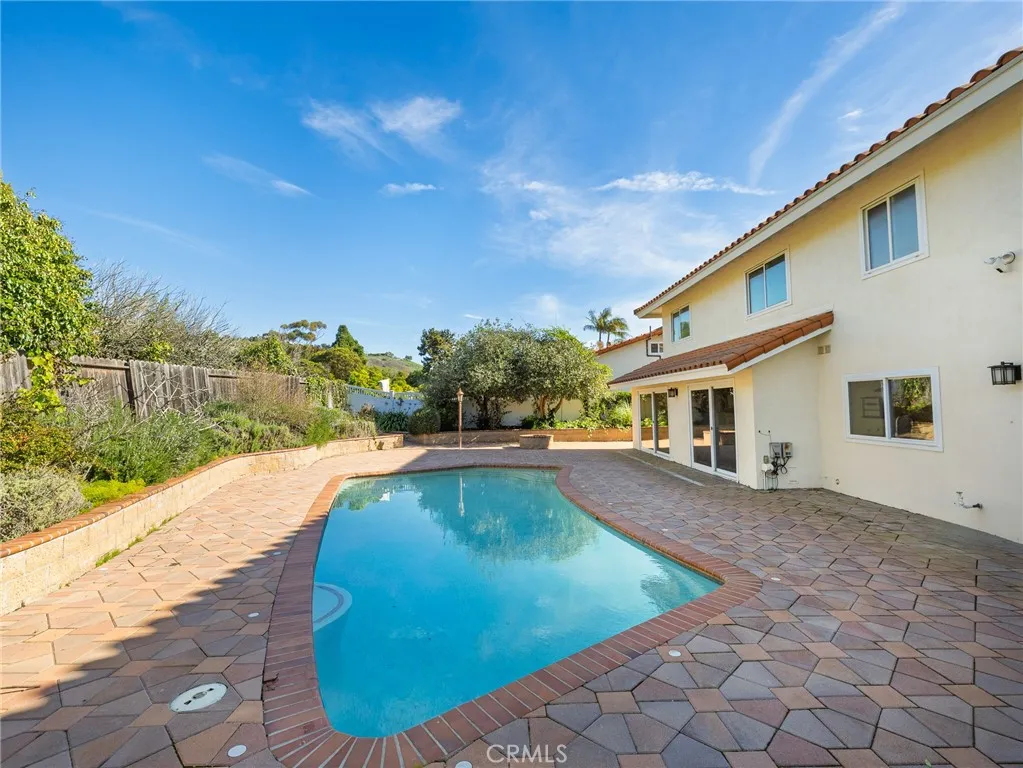 Located in the prestigious LA CRESTA neighborhood, this spacious 3,260 SF 5 bedroom, 3 bath home backs to the LOS VERDES GOLF COURSE. The soaring entry opens to the generous living room with fireplace. There is engineered wood flooring throughout the living room, FORMAL DINING ROOM, kitchen and family room. One bedroom and nearby 3/4 bathroom are also on the main level – perfect for guests or in-laws. The remodeled kitchen has cultured quartzite counters, soft close cabinets, induction cook top and stainless steel built-ins including double oven, microwave and dishwasher. The adjacent informal eating area has lots of built-in cabinets and a sliding door to the private POOL and patio. The pool/patio area is also accessible from the FAMILY ROOM and enjoys pavers and a fire pit. Upstairs, you’ll find the large primary bedroom with ensuite bathroom and a huge walk-in closet. There are also three additional bedrooms upstairs that share a full bathroom with a double sink vanity. Most windows are dual pane. The attached THREE CAR GARAGE includes laundry hook-ups. Parking for three additional cars on the paver driveway. Come take a look!!!