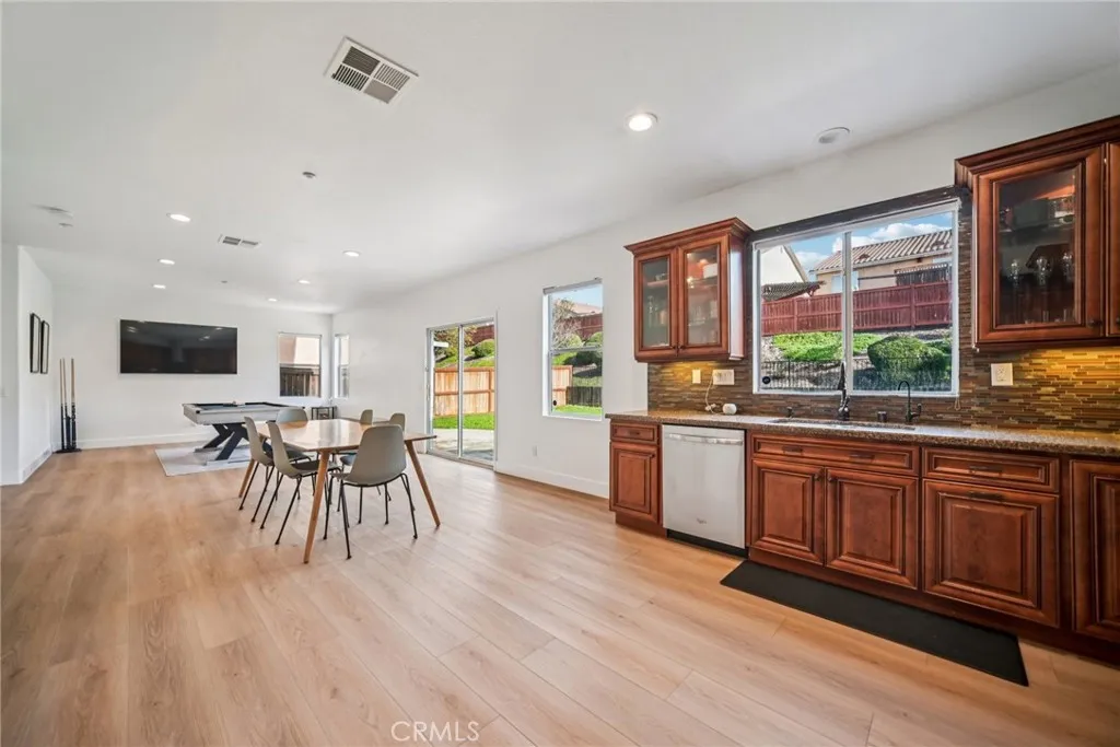 Welcome to resort-style living in the exclusive, gated Mountain Glen Terrace community of the Sylmar Hills. This beautifully updated 4-bedroom, 3-bath home offers approximately 2,885 sq ft of bright, flexible living space with fresh paint, newer flooring, and remodeled bathrooms throughout. The open-concept main level welcomes you into a formal living room that flows seamlessly into a large dining/den and kitchen area—perfect for entertaining or everyday living. The kitchen features a walk-in pantry and opens to the backyard, creating an effortless indoor-outdoor lifestyle.