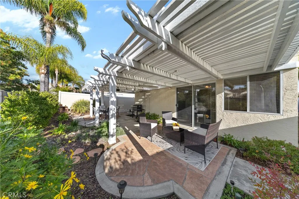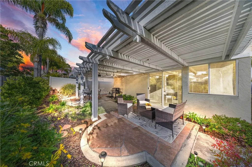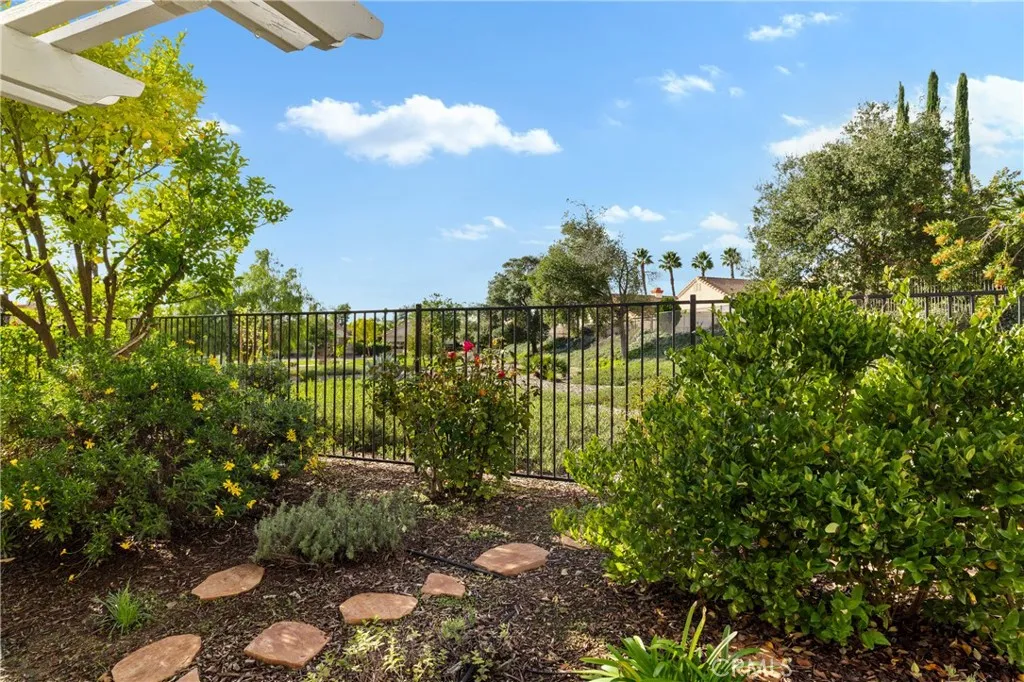 Welcome to this well-maintained single-story home located in The Colony, a premier 55+ gated, resort-style community offering an exceptional lifestyle. This residence blends recent updates, thoughtful design, and private outdoor living. A private gated and well manicured courtyard entry creates an inviting impression. Exterior improvements include newer vinyl fencing (2024), exterior paint (2022), and refurbished low-maintenance landscaping with irrigation (2023). The rear of the home opens to a spacious covered patio overlooking an HOA-maintained greenbelt. Wrought-iron fencing preserves open views while providing privacy from rear neighbors—an ideal setting for relaxing or entertaining. Inside, double doors lead to a bright, open floor plan with high ceilings and abundant natural light. The combined living and dining area offers flexible use and comfortable flow. The kitchen features granite countertops, a peninsula breakfast bar, a large walk-in pantry, and is open to the family room—perfect for everyday living and gatherings. The family room is centered around a gas fireplace with mantel, built-in cabinetry, ceiling fan, and two sliding glass doors that connect to the rear patio and side yard. The spacious primary suite includes patio access, a ceiling fan, and an ensuite bath with dual sinks, walk-in shower, and generous walk-in closet. A well-sized guest bedroom with mirrored closet is served by an adjacent bath with tub/shower combo. The laundry room is conveniently located off the kitchen, includes cabinetry, and offers direct garage access. The HOA waters and maintains front yard landscaping. Residents of The Colony enjoy unmatched amenities including a grand clubhouse, year-round pool and spas, tennis and pickleball courts, bocce ball, fitness center, salon, library, and a 400-seat auditorium with catering facilities for dances, movies, performances, and club events. Additional highlights include a lounge with fireplace and bar, perfect for private gatherings, and a privately owned 18-hole public golf course within the community. Ideally located near shopping, medical centers, parks, Temecula Valley wineries, and Pechanga Casino Resort.