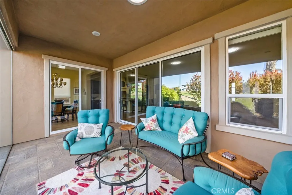 Step outside to the covered patio, an ideal extension of the living space and a perfect setting to relax or entertain year-round while enjoying views of the golf course and coastal surroundings. Professionally designed landscaping in both the front and backyard enhances curb appeal and creates a polished, low-maintenance outdoor environment.