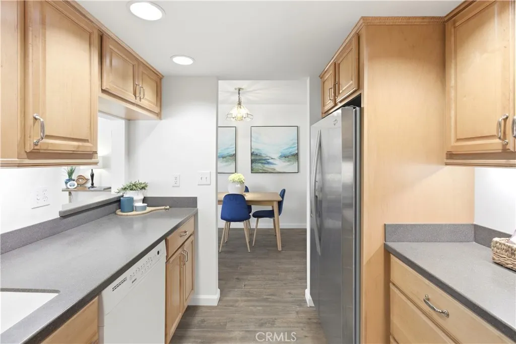 Updated 2bdr/2bath townhouse in a clean gated community. One garage space with direct entry to the house and one outdoor parking space next to the garage and the unit. HOA fee is very reasonable. Small community.