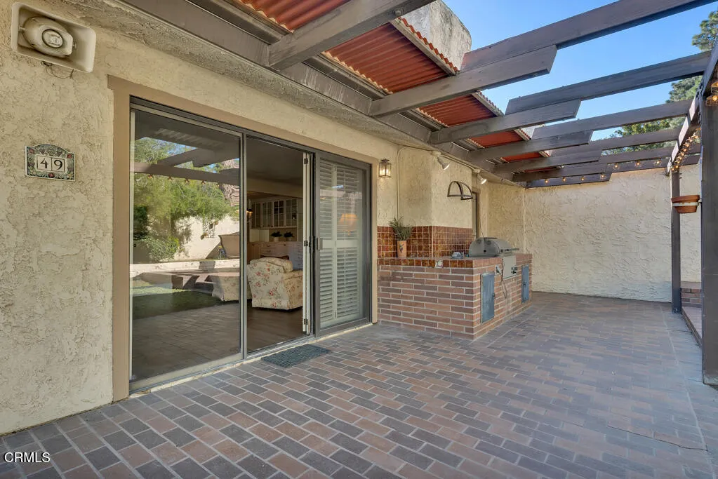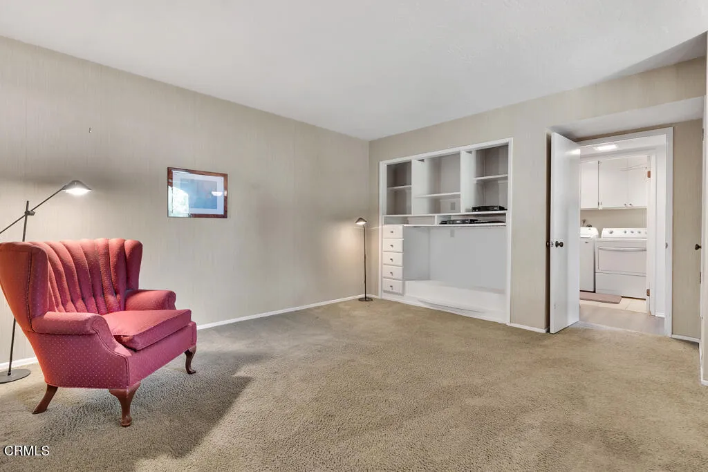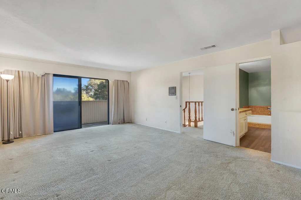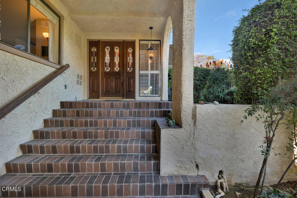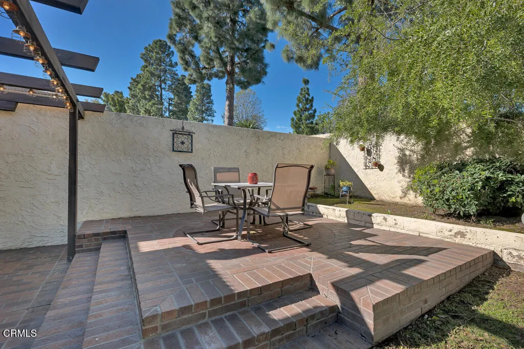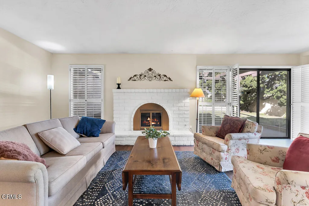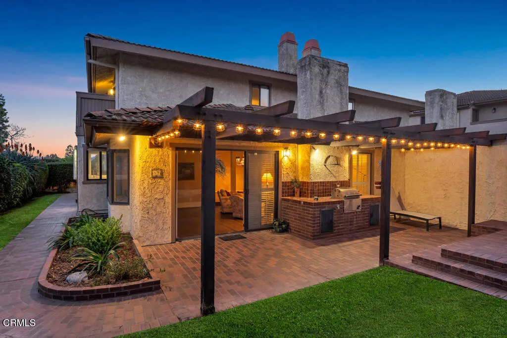 Introducing Villa Esplendido, a charming enclave ideally located adjacent to Nancy Bush Park. This spacious two-story attached residence enjoys picturesque views of the park and sparkling Camarillo city lights, offering a blend of comfort, character, and lifestyle convenience. The main level features a welcoming living room, dining room, kitchen, laundry room, plus a generously sized bedroom and 3/4 bathroom–perfect for guests or flexible living. The recently remodeled eat-in kitchen shines with modern upgrades including quartz countertops, double ovens, and a gas cooktop, along with a sliding door that fills the space with fresh air and natural light. The living room is warm and inviting, highlighted by a gas fireplace, bay window with seating area, built-in bookshelves, and sliding doors that open to a large rear patio–ideal for indoor-outdoor entertaining. The dining room offers a built-in hutch with abundant storage for hosting essentials. Cleverly tucked beneath the staircase is a hidden storage area with built-in shelving, perfect for pantry items, crafts, or hobbies. A truly unique feature of this home is the subterranean wine cellar, complete with a tall center counter–an intimate space to share a glass of wine with friends or family. This room can also serve as additional storage if desired. Upstairs, you’ll find three spacious bedrooms filled with natural light. The primary suite is a private retreat, featuring a large walk-in closet, sitting area, gas fireplace, and a well-appointed bathroom with separate tub and shower. Step outside onto the private deck to enjoy serene views of the park and surrounding neighborhood. One additional bedroom also offers its own deck with pleasant views, while the remaining bedroom shares a hall bath. The property shares one wall with an adjacent home and is ideally situated in Camarillo–just minutes to the beach, downtown Ventura, and approximately one hour to Santa Barbara or Los Angeles. Villa Esplendido offers space, character, and a location that captures the best of coastal Southern California living.