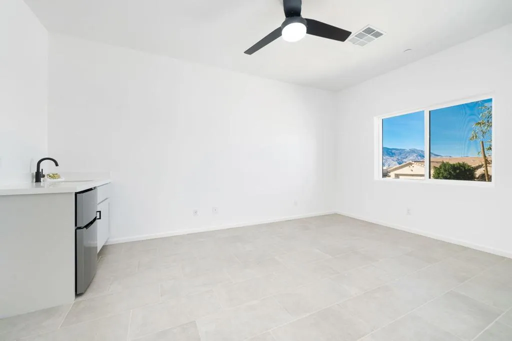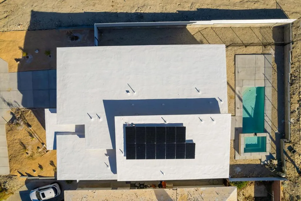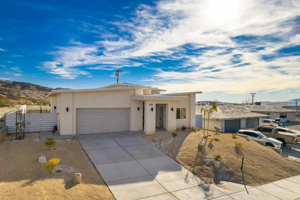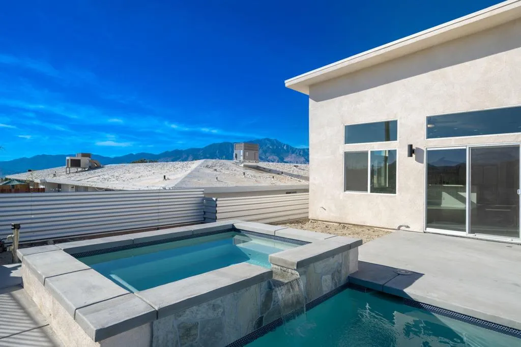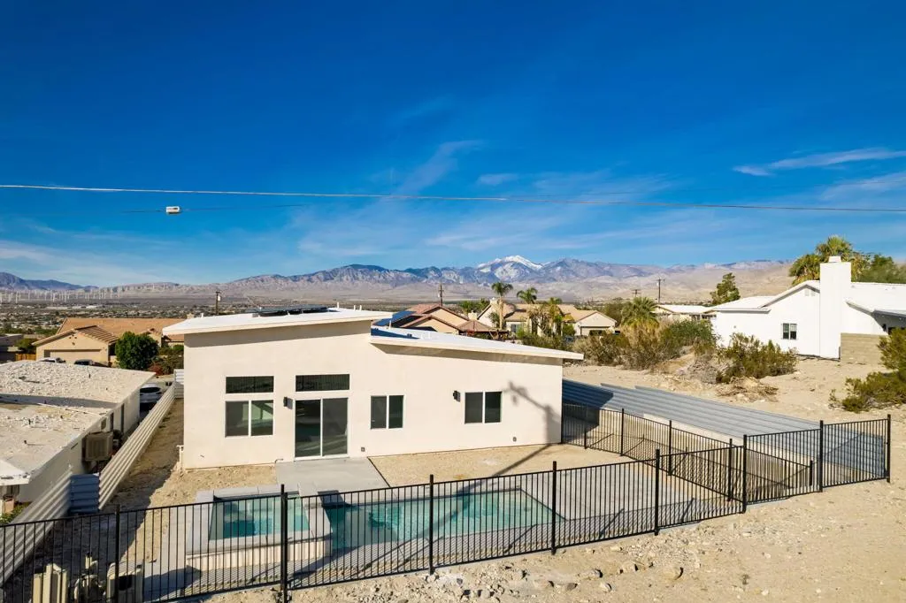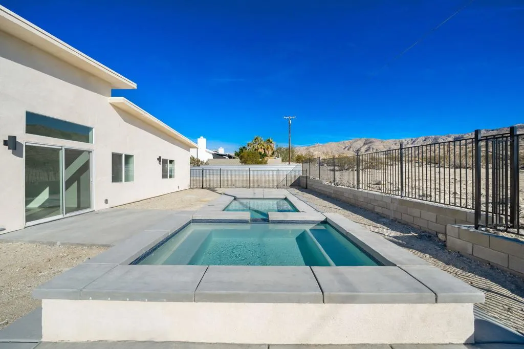 Newer construction Modern / Contemporary with POOL / SPA, CASITA with private entrance and kitchenette, and PAID OFF SOLAR! Modern / contemporary design, tiled flooring throughout, expansive open floor plan, with large windows to let in lots of natural light. NEW Appliance package included in sale: Washer and Dryer, Refrigerator, Dishwasher, and over the stove Microwave. Tall ceilings, desirable area of Desert Hot Springs, short-term rentals ok. 20 min approx. to Palm Springs, short drive to Joshua Tree. No HOA. Furniture negotiable.