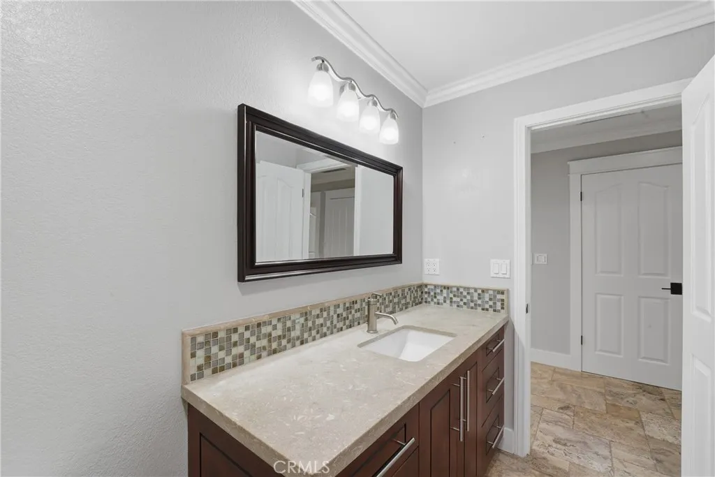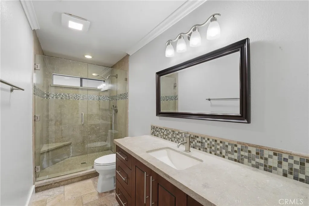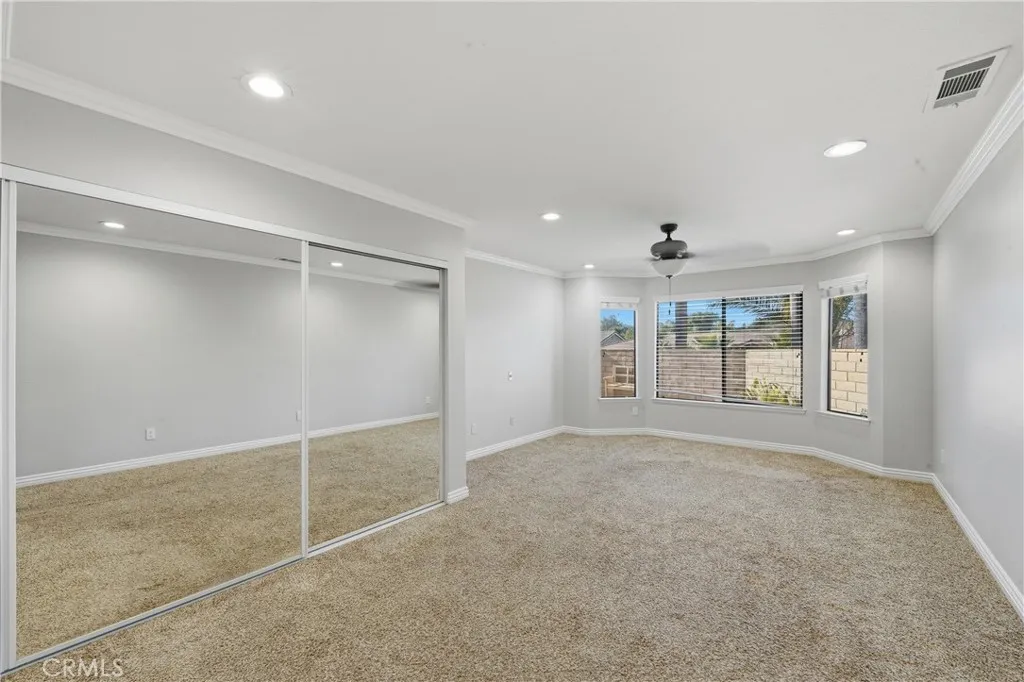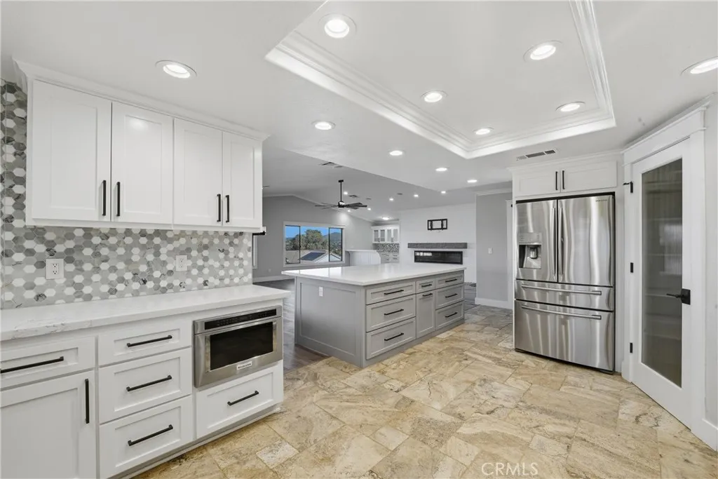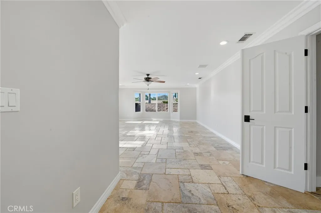 From the moment you arrive, pride of ownership is evident. Inside, enjoy a light-filled, open-concept design with fresh paint, high ceilings, luxury vinyl and travertine flooring, crown molding, recessed lighting, newer interior doors, and designer finishes throughout. The flexible floor plan offers three bedrooms plus a dedicated office and 2.5 bathrooms.