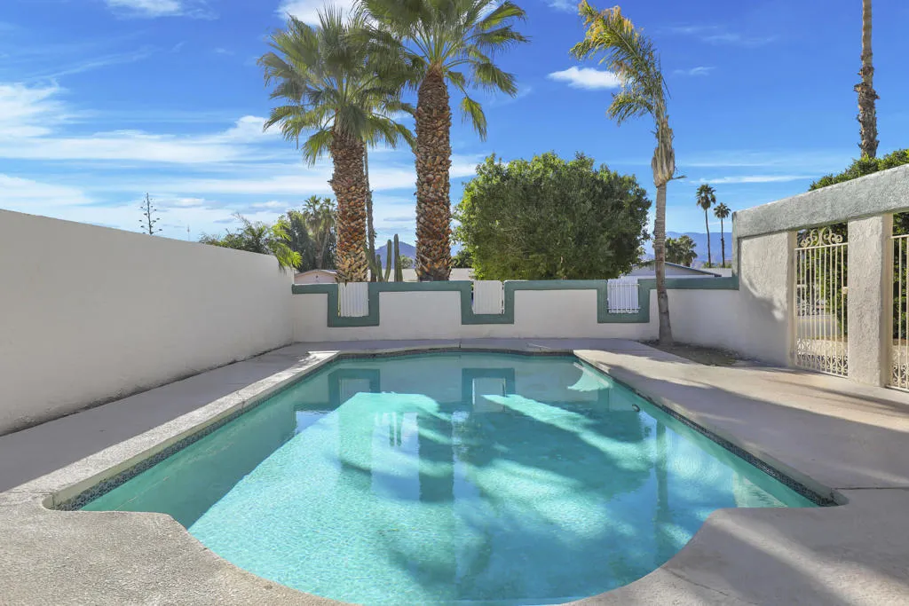 Centrally located in the heart of Palm Desert, this recently updated pool home in Palm Desert Country Club offers clean upgrades and a functional layout. The 3-bedroom, 2-bath home features new vinyl plank flooring, new baseboards, and fresh interior and exterior paint throughout. The updated kitchen includes new appliances, and both bathrooms have new hardware.The living room opens through a sliding door directly to the pool, creating an easy indoor-outdoor flow. A second slider in one of the bedrooms leads to the rear patio and yard. The pool is positioned on the front side of the home with southern exposure for maximum sun–ideal for all-day enjoyment. The rear yard offers grass and a slab patio, perfect for relaxing or entertaining. Centrally located near El Paseo shopping, dining, golf, schools, and the BNP Paribas this home is move-in ready and dialed in where it counts.