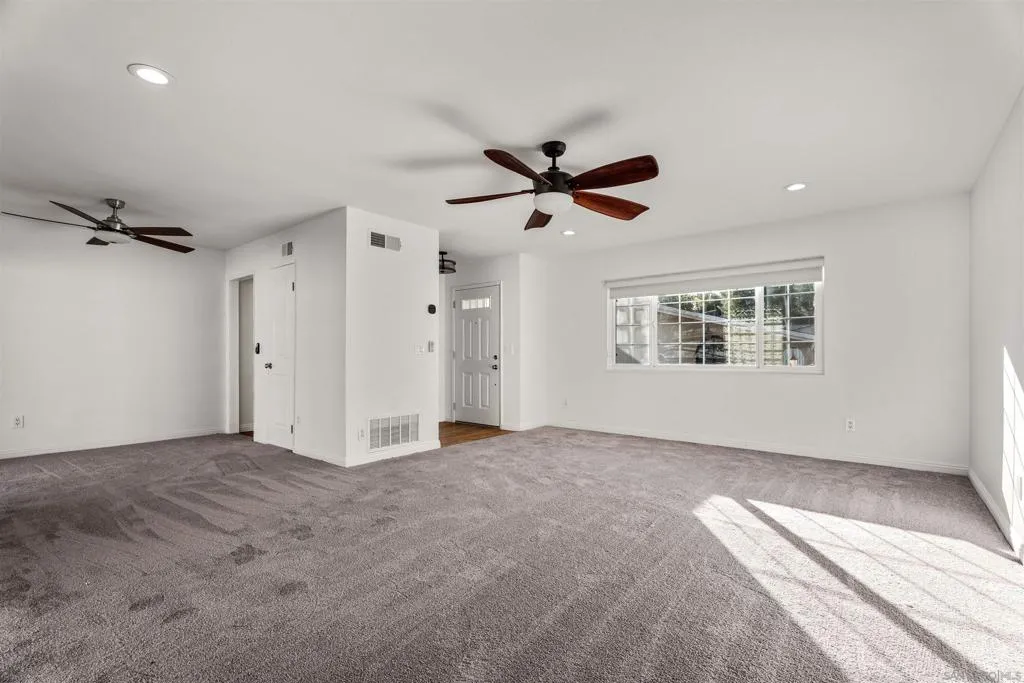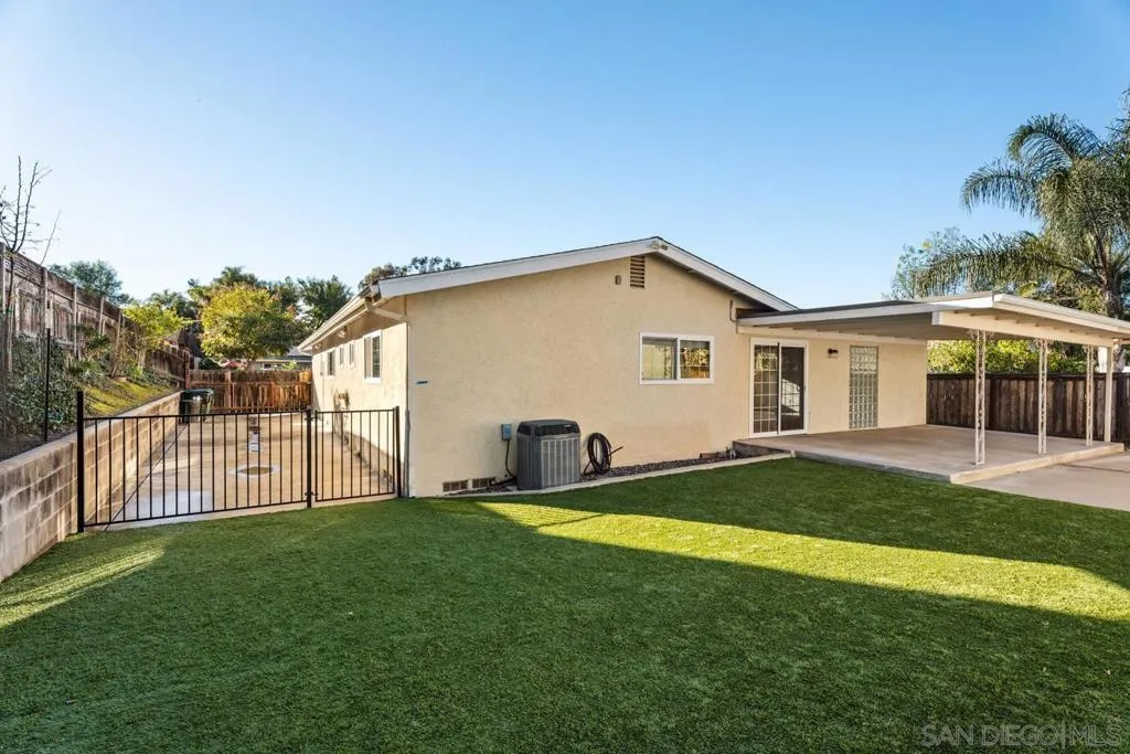 LOCATION…LOCATION… Blocks to Cowles Mountain, this single-level 1434 sq ft home is on a flat 7800 sq ft lot. It features a private, quaint gated courtyard, a newer roof, HVAC system and OWNED solar panels. Enjoy RV parking, direct access to the 2-car garage, and a low-maintenance yard. The open floor plan includes an ensuite primary bed/bath, recently refreshed paint, and carpet. The oversized gated courtyard and flat backyard offer potential RV parking and space for all the toys!