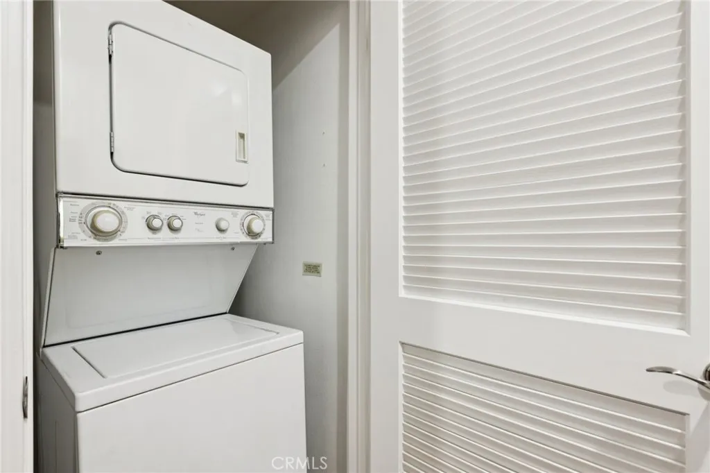 Hardwood floors set the tone in the main living areas, while brand-new carpet in the bedrooms keeps things soft where it matters most. The kitchen punches well above its weight with granite countertops, stainless steel Whirlpool appliances, and a five-burner stove ready for everything from weeknight dinners to “I’ll just make one more dish” moments. Stackable laundry inside means no hauling baskets down the hall—because convenience is a lifestyle choice.