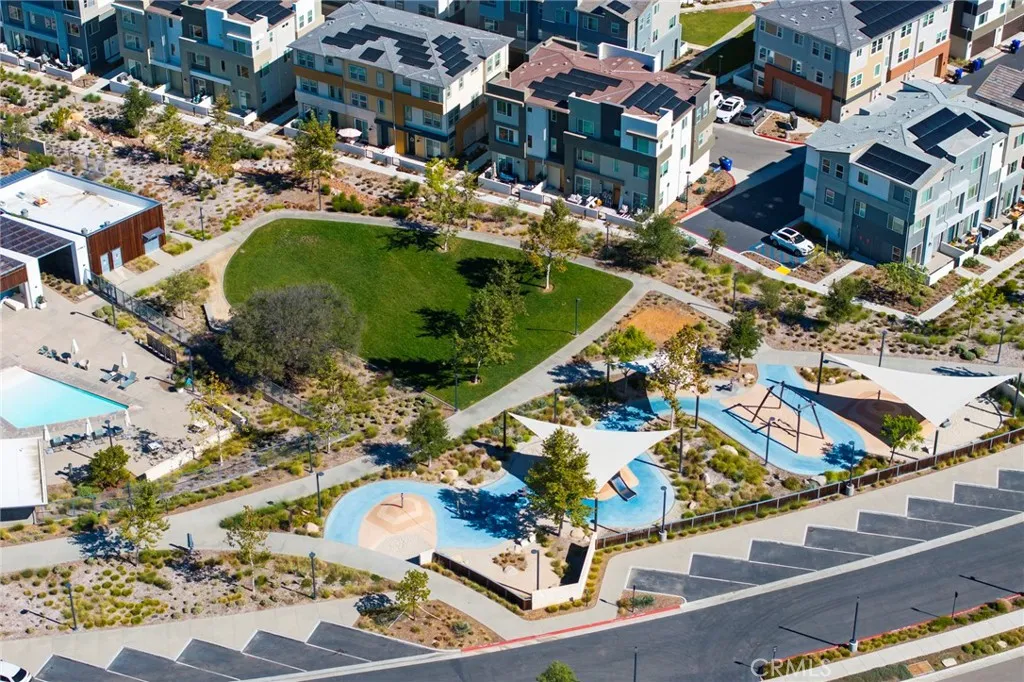 An amazing tri-level, stacked flat concept home Featuring a modern and functional layout with a spacious ground level office space perfect for working from home. The main level features an open concept design, showcasing luxury vinyl waterproof flooring, a bright family room with its own private balcony, LED lighting, a dining area, and a beautiful kitchen complete with sleek white cabinetry, stainless steel appliances, and quartz countertops. A Half bath is located on main level. Upstairs, you’ll find two roomy bedrooms, each with its own full bathroom, along with a convenient laundry area. The 2-car garage is attached with direct access to unit and offers a tankless water heater. Includes front yard private patio area. Enjoy some of the BEST HOA amenities around, including resort-style pools, a kiddie pool, a community center, outdoor fire pit with plenty of seating, picnic areas, cooking stations, community gardens, dog stations, and scenic walking trails. Centrally located near award-winning schools, golf courses, shopping at Westfield Mall, Six Flags Magic Mountain, and with easy freeway access. Come for a visit. Stay for a lifetime. Welcome home!