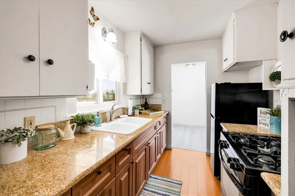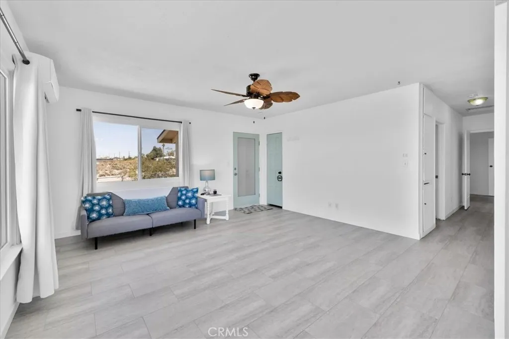 Welcome to a guest-ready desert escape just minutes from the East Entrance of Joshua Tree National Park—an ideal setup for a high-performing short-term rental or unforgettable personal getaway. Situated on over half an acre on a corner lot, this thoughtfully updated property offers privacy, flexibility, and multiple spaces guests love. The charming home welcomes visitors with a shaded patio and a charming frosted French door, opening into a bright, spacious living room framed by expansive windows. Modern updates in soothing desert-inspired tones create a clean, relaxing atmosphere, while life-proof, waterproof vinyl tile flooring stands up beautifully to high guest traffic. Recent capital improvements—including a new roof, dual-pane vinyl windows, and mini-split HVAC units in every bedroom and living space—provide energy efficiency, comfort, and peace of mind for owners and guests alike. The kitchen is outfitted with granite countertops, ample storage, and an adjacent indoor laundry room—an added convenience for longer stays and quick turnovers. A sliding barn door is an attractive feature that allows for zoned climate control and a cushion for quiet spaces. Both bedrooms offer generous space, with the rear bedroom featuring a walk-in closet and private access to a fully enclosed screened patio—a guest-favorite hangout for morning coffee or sunset cocktails. A major value-add is the detached, electrified stucco casita, currently used for storage but full of income-boosting potential. Convert it into a creative studio, yoga room, or remote-work space to elevate nightly rates and guest experience. Located just 3.2 miles to Joshua Tree National Park, 1.2 miles to Tortoise Rock Casino, and close to dining, entertainment, and local attractions, this property checks every box for a successful desert short-term rental. Whether you’re seeking a primary residence, vacation getaway, expanding your Airbnb portfolio or launching your first Joshua Tree investment, this home delivers exceptional versatility and value. Our last Buyer could not obtain financing, but it gifted us with an FHA appraisal over our current List Price, and a clear septic and termite cert for the next lucky Buyer! Opportunities like this don’t last—schedule your private showing today.