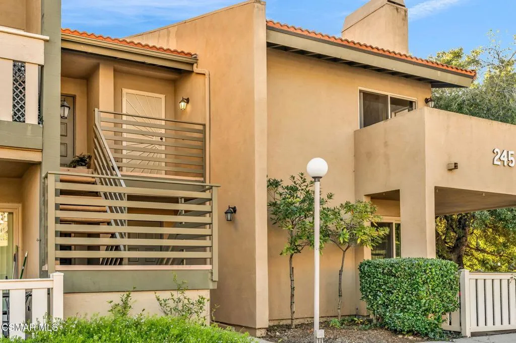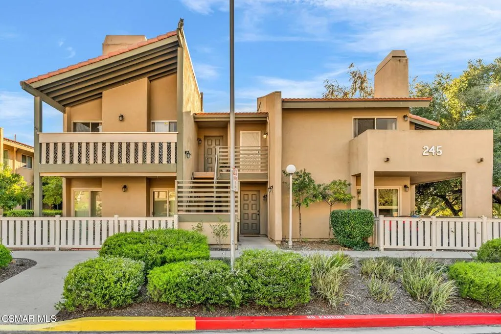Opportunity knocks on this super cute, upper level 2 bed, 2 bath, 1048 SF condo in the 55+ community of Oaknoll Villas. Come with your ideas and vision to complete this partially updated home. Get ready to pick out your flooring, design your kitchen, and pick out the perfect paint color, because this home is priced to sell! The living room has vaulted ceilings, a beautiful brick fireplace and glass sliders that leads to the balcony. From the living room, there is a separate dining area just off the kitchen. Down the hall, you have the secondary bedroom and bathroom. At the end of the hall, there’s a spacious primary bedroom with soaring ceilings, a walk-in closet and a large window for plenty of natural light. The primary bathroom has a new shower stall and a laundry closet with new washer and dryer. The home also includes a new dishwasher (12/25), newer HVAC (2021), and newer fridge. Oaknoll Villas has wonderful amenities including pool, spa, clubhouse, gym, billiard room, card room, shuffleboard courts, yoga room & dog park. The HOA includes trash, cable/internet, complimentary plumbing service, plenty of guest parking and landscape maintenance. This active SENIOR community is all electric, has carports for parking, is centrally located and very close to nearby parks, Conejo Valley Botanical Garden, shops and restaurants, The Oaks Mall and the Hillcrest Center for the Arts.