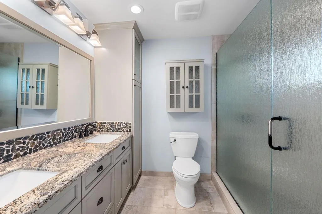 Set on a private drive in Mt. Helix, this versatile two-level residence offers a smart solution for multi-generational living or income potential. The flexible layout allows for separation of space while maintaining a cohesive footprint—ideal for extended family, guests, or rental use. The main level features three bedrooms, two bathrooms, open living and dining areas, a functional kitchen with butcher-block island, and a bonus room suited for an office or guest use. A full-length rear balcony provides privacy and hillside views.The remodeled lower level functions as a self-contained living area with kitchen, living space, fireplace, bedroom, and full bath—well suited for independent living or rental income. Outdoor areas include a paver patio and an expansive yard with room to make it your own unique space. Private, adaptable, and strategically designed, this Mt. Helix property delivers space, flexibility, and long-term value.