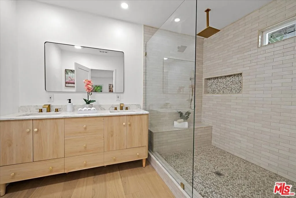 Beautifully remodeled 3-bedroom, 2.5-bath home located just steps from Kester Elementary, the home features an open floor plan with modern finishes and a stunning kitchen with a large center island. Sliding doors lead to a spacious backyard with a grassy area, perfect for entertaining or relaxing. The expansive primary suite includes a walk-in closet, dual-sink vanity, and oversized tiled shower. A rare opportunity to lease a sophisticated home in one of Sherman Oaks’ most desirable neighborhoods. *** There’s a permitted 1 Bed 1 Bath, 400 SQFT ADU vacant for an additional monthly rent***