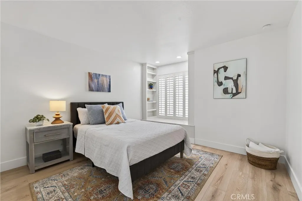 At the heart of the home is a bright, contemporary kitchen featuring new appliances, new flooring, refinished cabinetry, and updated fixtures that open seamlessly to the living spaces—ideal for both everyday living and entertaining. The residence includes four spacious bedrooms along with a versatile bonus room located just off the kitchen. Bathed in sunlight, this flexible space is perfect for a media room, home office, playroom, or additional family area. Plantation shutters throughout.