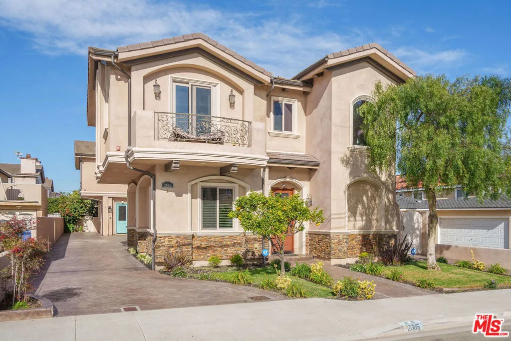 Enjoy the best of beach-city living in sunny Redondo Beach. This beautifully designed two-story townhome showcases a Mediterranean-inspired aesthetic with 4 bedrooms, 3.5 bathrooms, and a flexible layout ideal for both everyday living and entertaining. The main level features rich hardwood floors and an open floor plan designed for easy living. The well-appointed kitchen includes high-end appliances, granite countertops, and a center island that opens seamlessly to the dining and living areas. Large windows bring in abundant natural light, while the thoughtful layout creates a natural flow directly to the outdoor patio, perfect for indoor-outdoor living. An attached two-car garage provides direct access and added convenience. Upstairs, a striking staircase with custom iron detailing leads to a thoughtfully planned bedroom level. The primary suite is a true retreat, offering vaulted ceilings, a gas fireplace, a private balcony, a spacious walk-in closet, and a spa-like bathroom with a soaking tub and separate shower. In addition, there are three additional well-proportioned bedrooms, two full bathrooms, and a full laundry room conveniently located nearby. Outdoor living is a highlight, with a private patio and backyard framed by mature landscaping that enhances privacy and creates a peaceful setting to relax, dine, or entertain. Ideally located near top-rated schools, parks, restaurants, and the beach, this townhome delivers comfort, style, and an exceptional South Bay lifestyle.