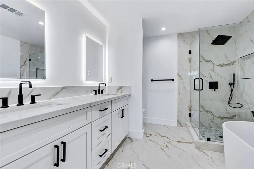 Exceptional outdoor spaces extend the living area beyond the interior, including a 190-sf private yard area, and a spacious rooftop deck at the mezzanine level, ideal for entertaining, relaxing, or a private retreat for enjoying coastal breezes. The mezzanine itself offers approximately 300 square feet of flexible space, ideally suited for a home office, gym, media room, or additional lounge area. The primary suite is a serene retreat, with a large walk-in closet and a spa-inspired bathroom, complete with a freestanding soaking tub. Secondary bedrooms are also all equally well-appointed, each with its own en-suite bathroom. This state-of-the-art home also features smart and energy-efficient details, such as a Ring security system, solar power, Nest climate control, and wiring for EV charging in the attached 2-car garage. Ideally located near beaches, dining, shopping, and award-winning RBUSD schools, this townhouse presents a rare opportunity to own a modern and uniquely designed home in Redondo Beach.