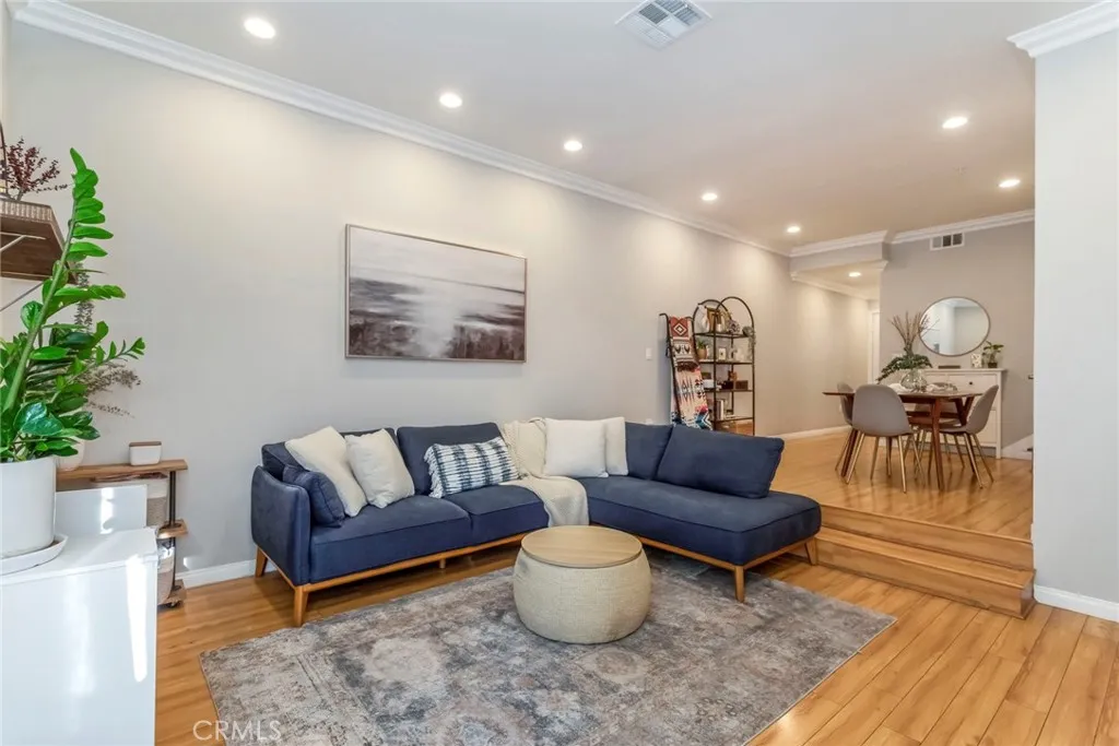 Come see this beautifully renovated townhome ideally located in the heart of Valley Glen. Offering nearly 1,100 square feet of open, light-filled living space, this two bedroom, two bath residence is thoughtfully designed for both everyday comfort and effortless entertaining. Upon entry, you’re welcomed by high grade light wood laminate flooring that flows throughout, complemented by inviting paint selections, upgraded recessed lighting, and two sets of over sized sliding doors that flood the home with natural light. Designed with entertainers in mind, the home features two private patios, perfect for al fresco dining and indoor outdoor living. The expansive kitchen has been tastefully renewed with updated shaker and glass-front cabinetry, granite countertops, a granite and mosaic tile backsplash, stainless steel appliances, modern fixtures, and a large stainless farmhouse sink. The generous family room is anchored by a striking custom accent wall and offers direct access to one of the patios, creating a seamless flow for gatherings. Just above, the elevated dining area provides a spacious and inviting setting for hosting. Upstairs, the serene primary suite showcases another custom accent wall, double mirrored closets, and a private ensuite bath. The remodeled bathroom features a white oak vanity with quartz counters, along with a tub/shower combination finished in custom tile. The secondary bedroom is equally impressive with a custom closet organizer and a built-in Murphy bed, offering exceptional versatility. The additional hall bath has also been remodeled and includes a coordinating white oak vanity with quartz countertop, a stylish shiplap accent wall, and a walk-in shower with classic subway tile. Throughout the home, you’ll appreciate the design details including statement lighting, custom built-ins, crown molding, and clever storage solutions. Modern conveniences complete the home with in-unit private laundry, a controlled-access subterranean garage, and gated entry. Easy access to the freeways, close to parks and shopping!