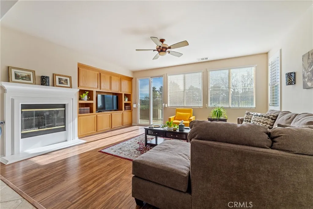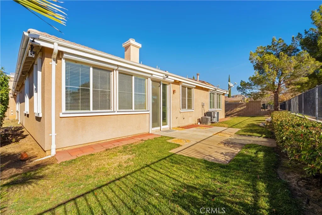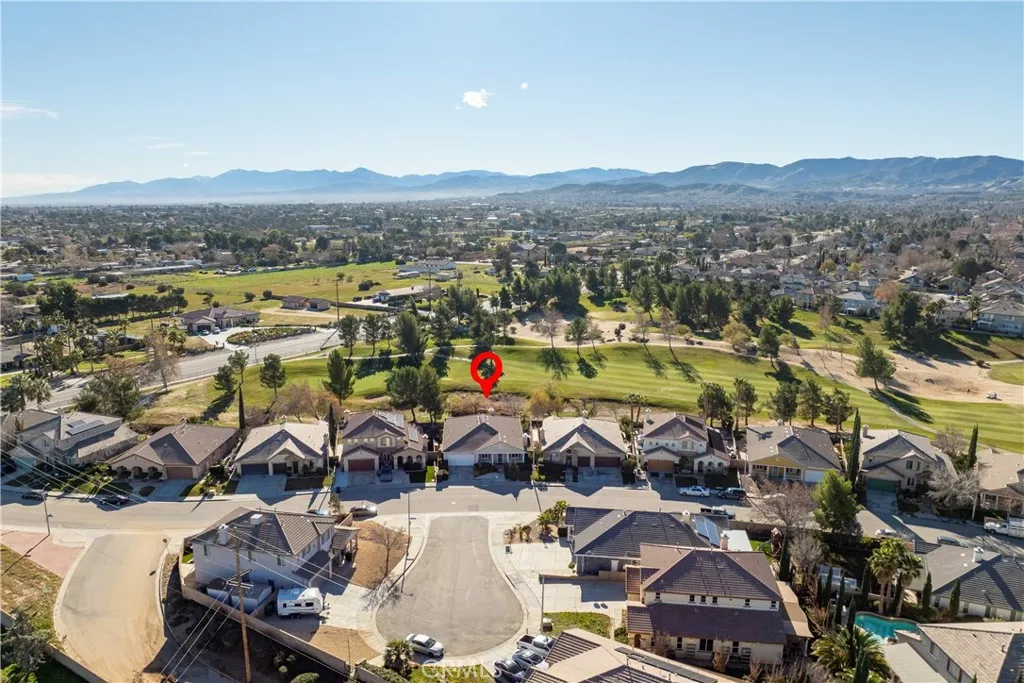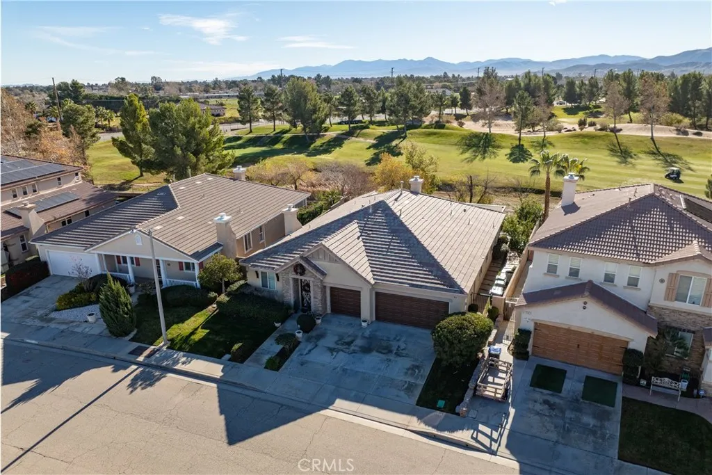 Experience luxury golf course living at its finest in Rancho Vista. This stunning former model home is perfectly situated in the prestigious Palmdale West community. This expansive single-story residence features three oversized bedrooms, three bathrooms, and a versatile bonus room that can easily be converted into a fourth or even a fifth bedroom. From the elegant travertine-tiled foyer to the designer wood ceilings in the formal dining room, every detail exudes sophistication. The home includes rich wood flooring and three separate fireplaces for unparalleled ambiance. The gourmet chef’s kitchen is equipped with a massive central island, a butler’s pantry, and double ovens. The primary suite serves as a true sanctuary, featuring its own fireplace, a retreat area with custom built-ins, and a spa-like bath with a soaking tub and walk-in shower. Key upgrades include a newer AC condenser, gutters, and custom aluminum exterior security shutters for golf ball protection. A three-car tandem garage provides ample space for vehicles or a workshop.