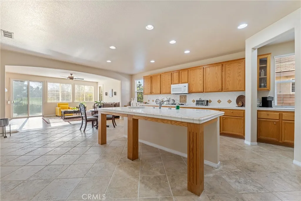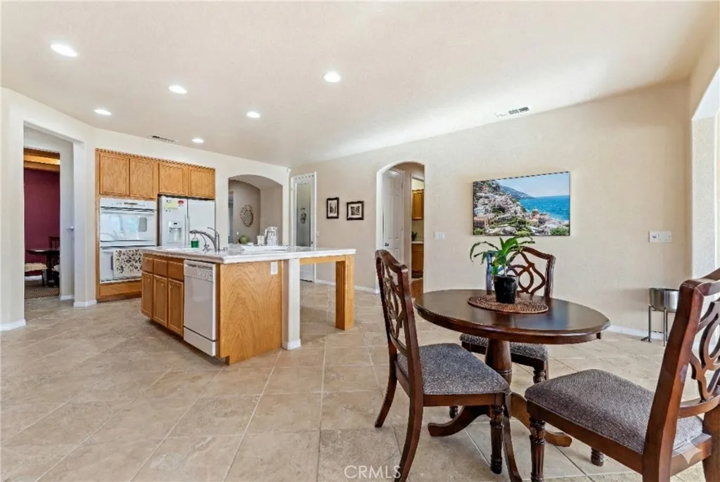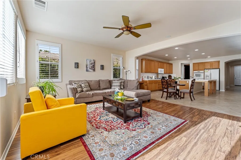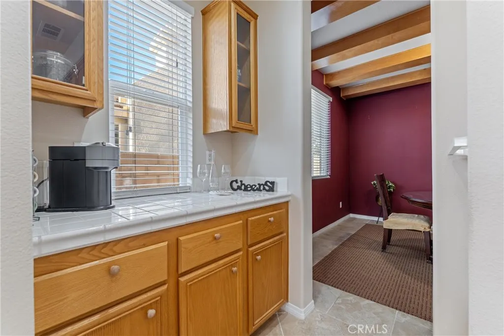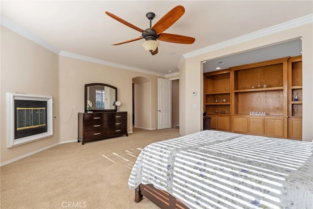 Experience luxury golf course living at its finest in Rancho Vista. This stunning former model home is perfectly situated in the prestigious Palmdale West community. This expansive single-story residence features three oversized bedrooms, three bathrooms, and a versatile bonus room that can easily be converted into a fourth or even a fifth bedroom. From the elegant travertine-tiled foyer to the designer wood ceilings in the formal dining room, every detail exudes sophistication. The home includes rich wood flooring and three separate fireplaces for unparalleled ambiance. The gourmet chef’s kitchen is equipped with a massive central island, a butler’s pantry, and double ovens. The primary suite serves as a true sanctuary, featuring its own fireplace, a retreat area with custom built-ins, and a spa-like bath with a soaking tub and walk-in shower. Key upgrades include a newer AC condenser, gutters, and custom aluminum exterior security shutters for golf ball protection. A three-car tandem garage provides ample space for vehicles or a workshop.