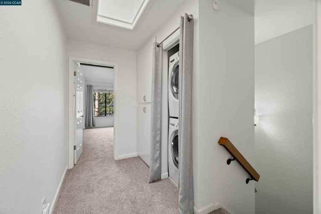 This bright and spacious home features 2 oversized bedrooms with vaulted ceilings and skylights, each with its own ensuite bathroom, plus a convenient main-level powder room. Enjoy indoor-outdoor living with a private gated entry patio and a backyard patio with storage. The kitchen shines with stainless steel appliances and open floor-plan. There’s an in-unit washer/dryer and parking with two spaces (one in garage and one open space). Community perks include a pool, spa, tennis court and greenbelt. Located in the highly sought-after Walnut Creek and Acalanes school districts (buyer to verify). Perfectly located near downtown Walnut Creek, BART, and trails.