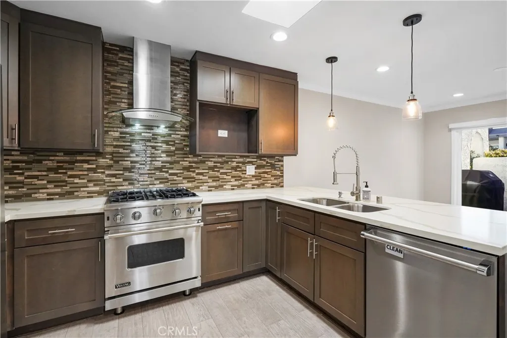 Redone 1 Story unit. Feels Like a House. Only 1 Common Wall. No One Above or Below. Stunning Gourmet Kitchen with Viking Stove. 3 Bedrooms, 2 Baths, just across the Street from the Lake, Shops & Restaurants. Open Floor Plan. Great Patio !! The Home Features Hardwood Floors, LED Recessed Lighting, Duel Pane Windows & Doors. Central Air & Heat. Private 2 Car Garage. Huge Primary Suite with Sitting Area, Double Vanity Bath, and Large Walk in Closet. Washer & Dryer in Unit. Community Pool & Spa.