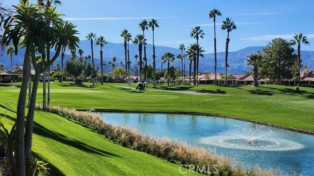 This upgraded and well-maintained home offers 3 bedrooms and 2 bathrooms. The open floor plan and vaulted ceilings in the living room, along with plantation shutters, provide unobstructed views of the golf course and mountains. The kitchen includes ample cabinet space, granite countertops, and appliances such as a dishwasher, gas range, oven, broiler, microwave, refrigerator, and garbage disposal. The master bedroom connects to a bathroom featuring tile finishes, updated step-in tile shower, dual sinks, and walk-in closet. The second bedroom connects to a bathroom with updated step-in tile shower. The third bedroom can also be used as a den or office. Oasis Country Club is a gated community that contains an 18-hole golf course, pools and spas, fitness center, tennis and pickleball courts, and a putting course, all within landscaped grounds. This home is being offered fully furnished.