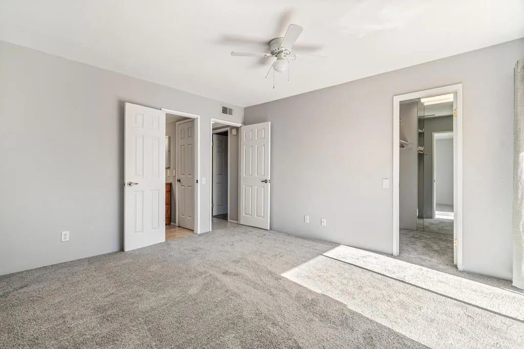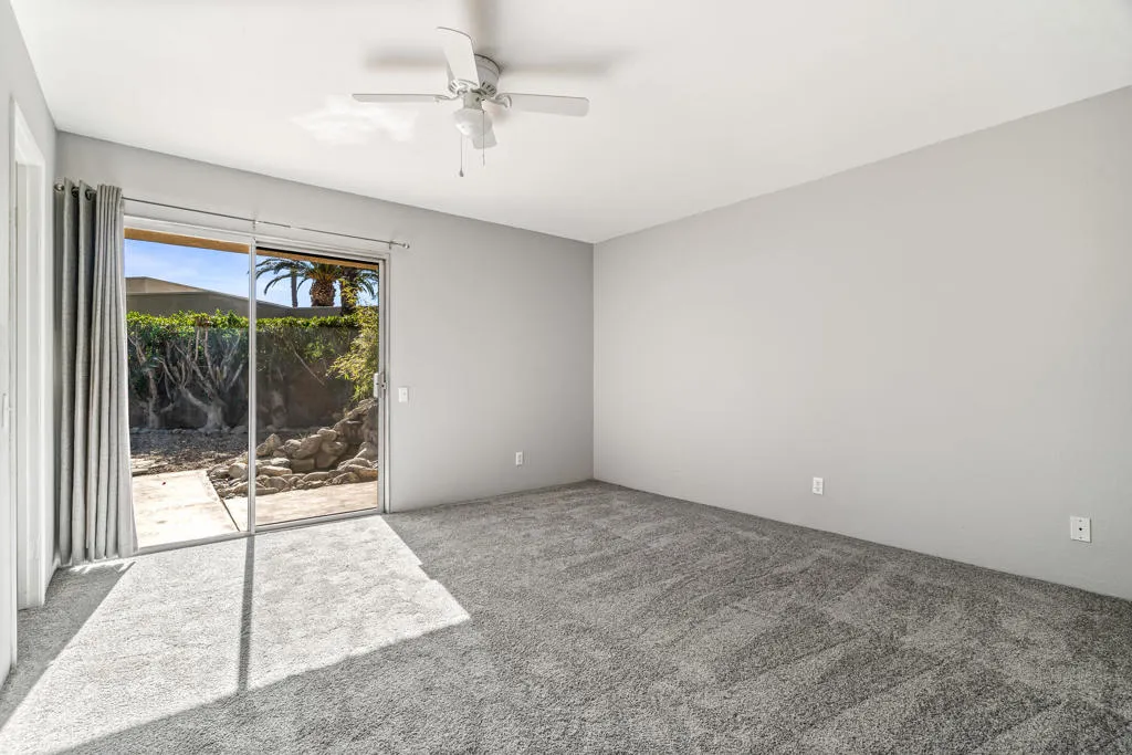 Nestled in the friendly gated community of Sunrise Palms near all conveniences and minutes from Downtown Palm Springs with its restaurants, shops and entertainment, this single level end unit (best location near a pool and community mailbox)) 2 bed/1 bath condo would make for a wonderful full time or part time residence. Enjoy an open floor plan with a well fitted kitchen with solar tube skylight, updated cabinets and brand-new stainless appliances (Samsung stove/dishwasher/microwave/ fridge) as well as your own washer/dryer also brand new (located in an inside closet). Enjoy the additional peace of mind of a newer HVAC System & water heater. The current owners removed the popcorn ceilings, installed new interior doors and added brand new wall-to wall carpeting in all bedrooms to complement the low maintenance ceramic tile in the main living space. This floor plan offers two spacious bright bedrooms (one with a great spot to install a built-in desk), each with a walk-in closet and share a large bathroom with a tiled enclosed shower/tub combo and updated cabinetry . Outdoors await a private fully enclosed sizeable yard (pets will love it) with majestic palms , mature landscaping , freshly painted concrete decking, a peaceful water feature perfect for entertaining friends & family and enjoying sensational mountain views…not convinced yet ? this condo comes with an attached one car garage . Sunrise Palms offers resort-style amenities, including 8 pool and spas (2 heated year-round) 2 tennis courts, a pickleball court, 2 basketball courts, and multiple park areas. Monthly HOA dues cover water, trash, roof and outside maintenance. Seller financing available with a minimum of 20% down payment. Call for a private viewing of this wonderful value offering.