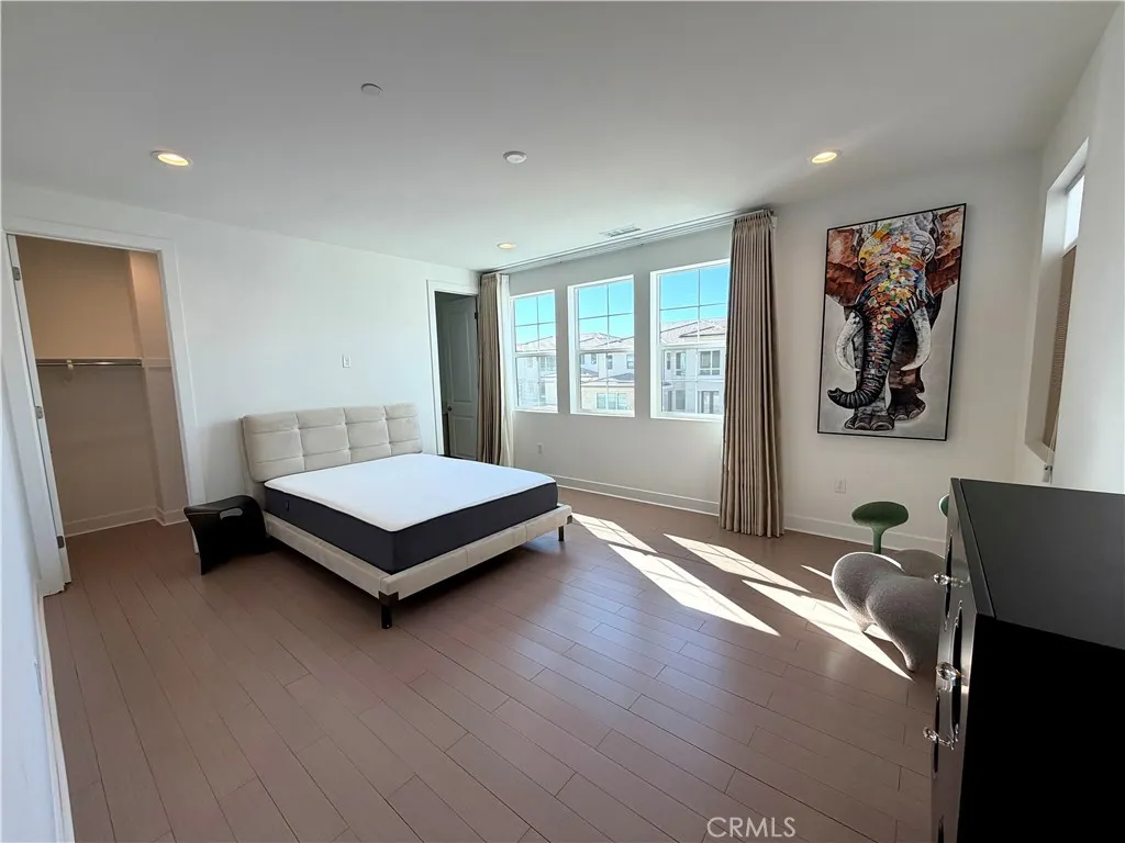 The contemporary interior showcases a dramatic two-story foyer with soaring ceilings, an expansive great room, and an open chef’s kitchen featuring a Wolf range and built-in Sub-Zero refrigerator—ideal for both everyday living and entertaining. A main-level flex room provides versatility for an office or guest suite, while the upstairs loft offers additional living or entertainment space. Each bedroom includes its own ensuite bathroom, ensuring comfort, privacy, and convenience. Designed for modern, energy-efficient living, the home is equipped with solar panels, smart thermostats, a tankless water heater, and three parking spaces.