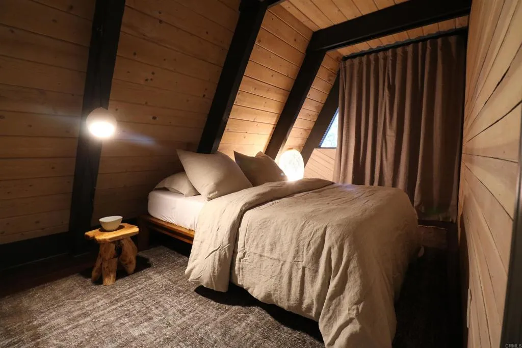 Welcome to Starhaus, a thoughtfully reimagined A-Frame retreat where architecture, nature, and quiet luxury converge. This beautifully remodeled residence is inspired by Japanese wabi-sabi, celebrating simplicity, organic materials, and the subtle beauty of natural imperfection. Muted earth tones, tactile fibers, and curated finishes create a serene and cohesive environment. Furnishings may be included for a truly turnkey experience. Set beneath some of Southern California’s most celebrated night skies, Starhaus offers an immersive escape from city life without sacrificing modern convenience. Reliable high-speed internet supports remote work or full-time living, all while surrounded by forest stillness and natural beauty. The one-acre property, is graced with mature oaks, cedars, and firs, alive with birdsong and seasonal change. In winter, snow falls softly as you gather around the wood-burning stove. Year-round comfort is ensured with an efficient mini-split system providing both heating and air conditioning. A generous balcony invites evening stargazing, morning coffee among the trees, or quiet reflection beneath expansive skies. Outdoors, relax by the campfire, grill under the stars, and enjoy the tranquility of the level, usable fern meadow, which may offer potential for a guest house or additional retreat space. The property includes an over-sized garage/workshop and storage area, ideal for hobbies, gear, or creative pursuits. Currently enjoyed as a limited vacation rental and private family retreat, Starhaus is shown by appointment only to ensure a discreet and personal viewing. Schedule your private tour and experience this rare mountain sanctuary for yourself. You will be glad you did.