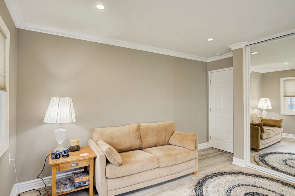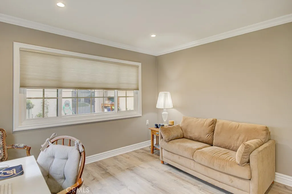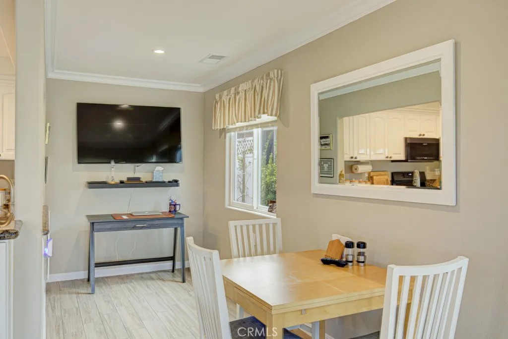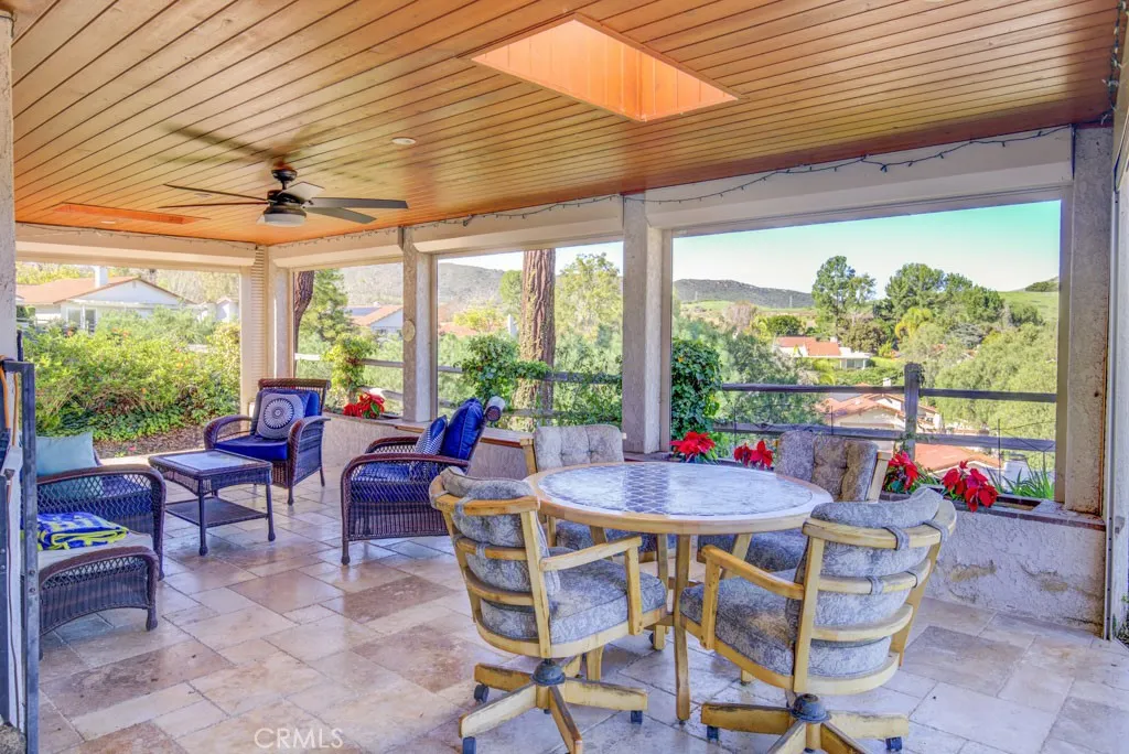 Welcome to 5078 Tero – an expanded, beautifully remodeled single-level detached VILLA TERRAZA residence in the Laguna Woods senior community. This home has one of the most spectacular views of any property in Laguna Woods Village. On a clear day, one can see the snow-covered peak of Mt. Baldy! View from the rear patio as well as the residence’s common rooms is simply magnificent – boasting an impressive 180° view of trees, hills, neighborhood rooftops & the Saddleback Mountains. Property is situated on a quiet street within the sought-after Gate 11 neighborhood far from busy roads & noisy highways. Wrought-iron front gate opens to an expansive private courtyard w/hot tub. Attractive front door w/etched glass inserts opens to a short hallway leading to the light & bright living room which features a lovely bay window, enormous wine fridge & wood-burning fireplace. Both living room & adjacent dining area have direct access to the large covered rear patio via glass sliders. Original side patio adjacent to the dining area has been replaced w/nearly 150 sq. ft. of additional living space allowing for a small office cubby & extended space for an extra-large dining table. Remodeled kitchen has stainless steel appliances & lots of cabinet storage w/convenient pull-out drawers. Primary bedroom suite has been expanded by over 100 sq. ft. Primary closet extends the length of one wall. Primary bathroom features attractive wood cabinets w/stone countertops, dual sinks, privacy toilet door & oversized shower w/convenient seat. Guest bedroom (also en suite) has an added window providing a lovely mountain view. This versatile room could easily serve as a home office, exercise room or arts & crafts workshop. Upgrades include smooth ceilings, recessed lighting, crown molding & baseboards, central HVAC, porcelain tile flooring in the common areas & mirrored closet doors in both bedrooms. Enormous covered rear patio has skylights, ceiling fan, attractive built-in planters & retractable shades & is ideal for large-scale year-round entertaining, dining & relaxing. Rear patio, front courtyard & expanded dining area serve as the ultimate environment for large social functions. This home is perfect for entertaining! Direct garage access to the residence via a small laundry room w/sink & storage cabinets. Driveway easily accommodates two additional vehicles & there is also ample street parking for guests.