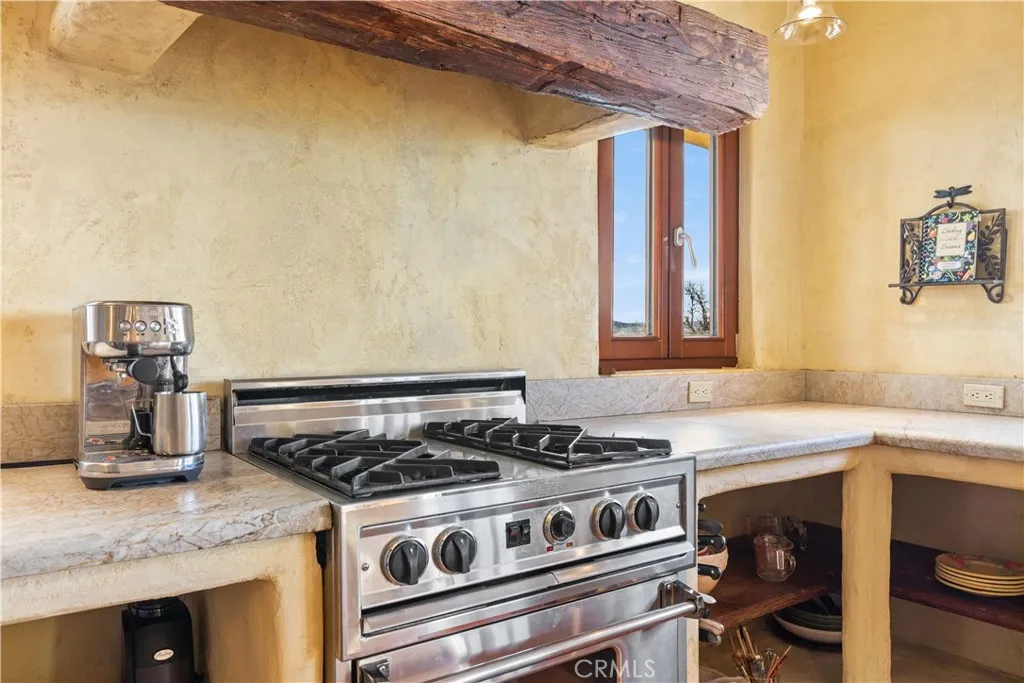 Incredible Tuscan Villa atop Mount Dali-Dona has panoramic views of Clear Lake, Big Valley & Mount Konocti. You will feel like the rest of the world disappears the moment you enter this property. As you make your way up the wildflower-lined driveway, the manzanita and mature oaks will welcome you to this incredible home. The residence is built with imported antique beams, French country-style kitchen with fireplace, quartzite counters, unique old-world aesthetics, heated floors, dual solar/PG&E power, and a wood stove. The property features 3 levels, 3 bedrooms and 3 bathrooms, wine cellar, large basement, formal living room, office, walk-in pantry. Beyond the home large fenced area with irrigated garden beds and a planting shed. A separate building with ADU potential offers storage, 1 half bath, a loft and a sink, adjacent to the vineyard with separate electric meter and septic. 1.6 acres of Rhone grapes and olive trees. Also included is the sale, de-stemmer/crusher, filter press & barrels to produce your own wine! This expansive yet cozy home is full of charm and has unparalleled views from every angle. The estate is situated on 27+/- acres and has gated access. Close to downtown Kelseyville, restaurants and shops. Borders the Clear Lake State Park with great hikes, lake access and camping. Secluded and peaceful, this property offers an incredible opportunity to observe wildlife and disconnect from the day-to-day hassle. Potential for ADU or rental property.