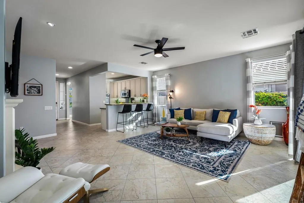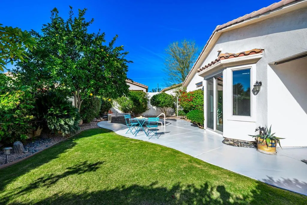 Sun City Shadow Hills – Highly Desirable San Vicente Model. Owner financing available! This beautifully maintained San Vicente model offers 2 bedrooms, 2 bathrooms, plus a versatile den–perfect as a home office or easily converted into a third bedroom. The home is filled with natural light and features an open, airy floor plan in a quiet interior location, ideal for relaxed desert living. Interior Highlights;spacious primary suite privately separated from guest bedroom and bath. Den/office with double-door entry. Charming arched doorways and windows. Bay window in the primary bedroom looks out to the pool and garden. Cozy fireplace in the living area. Ample storage throughout. Garage equipped with a mini-split air conditioner. Exterior Features; phase one quality construction with 6-inch thick walls, provides exceptional insulation from both heat and cold. Classic Spanish tile roof. Timeless white stucco exterior. Private backyard retreat; step into a lush tropical oasis, perfect for entertaining or unwinding under the stars. Refreshing salt water spool with waterfall feature. Covered outdoor seating and grilling area with fans and lighting. Mature landscaping featuring lemon, grapefruit, and orange trees, along with bougainvillea and hibiscus. Resort-Style Living at Sun City Shadow Hills. Enjoy one of the Coachella Valley’s premier 55+ communities, offering:60+ clubs and social activities, 3 swimming pools (including an indoor pool), 2 state-of-the-art fitness centers, 2 world-class golf courses, outdoor concerts, comedy nights, and diverse fitness classes, library, expansive billiards/pool room, tennis courts and 12 pickleball courts!Low HOA monthly fee of $398.00 includes social membership, WIFI, guard gate and garbage. Imperial Irrigation District equals lower electric cost! Desert Living at Its Best! You will love this house!