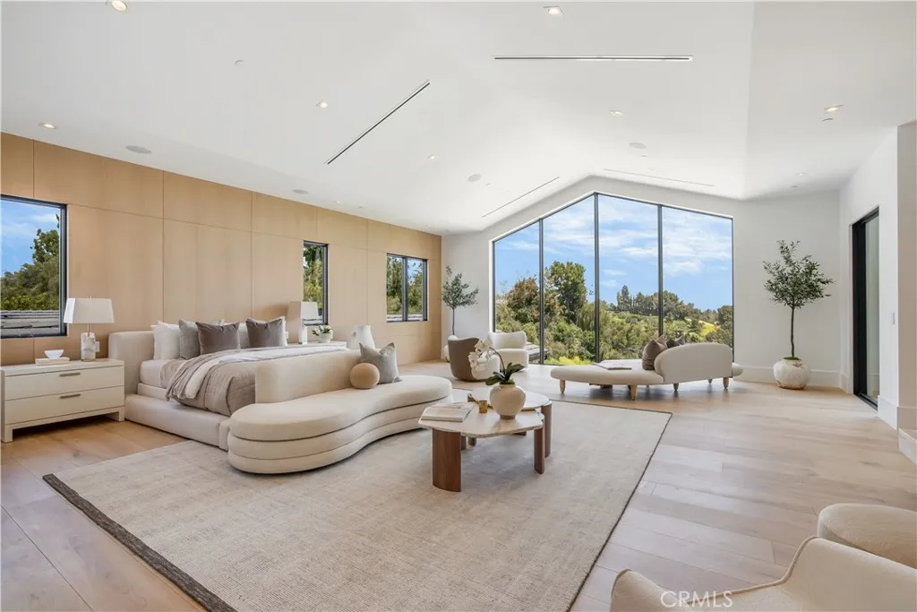 Welcome to “The Ridge at Hidden Hills”. This new, absolutely spectacular, one-of-a-kind estate is nestled at the end of a quiet cul de sac and is sited on a beautiful 1.77 acre view lot. Step through the custom 12’ glass pivot door and enter into a world of luxury, elegance, and quality. Bathed in natural light, and spanning 21,670 square feet, this home exemplifies the essence of the relaxed, indoor/outdoor California lifestyle. Highlights of the spacious open floor plan include a gorgeous, three level floating staircase, stellar, restaurant quality chef’s kitchen (and prep kitchen), entertainer’s center island with counter seating, and big breakfast room, all open to the large family room with motorized, sliding walls of glass, two-sided fireplace, and adjoining living room with lounge and seating bar. Additional amenities include a formal dining room with refrigerated wine wall, adjoining butler’s pantry, and a full catering kitchen, plus a large private office with full wall windows, a stunning home theater with fabric covered acoustic sound walls, and wonderful gym & spa complete with massage room, steam shower & sauna. There are six generous en suite bedrooms, four upstairs and two on the main floor, all serviced by an elevator. The superb primary suite offers a sitting area, fireplace, deluxe bath with dual showers and big soaking tub, enormous, room sized custom closets, and a large private balcony showcasing the expansive pastoral views. One of the two downstairs suites is a second primary suite with a soaking tub, covered patio, and its own private entrance. The basement space is a world of its own with a huge game room/lounge, a two lane bowling alley, and garages for 10 cars, showcased by gleaming epoxy floors, plus there’s an additional 4 car garage on the main level. The spacious grounds include a sparkling, zero edge infinity pool & spa, three covered patios complete with a full barbecue center, two fireplaces, a powder bath, outdoor bath & shower, and expansive grass lawns. There are also plans for a guest house. This trophy property is located on one of the finest streets in all of Hidden Hills, and close to highly regarded public & private schools, and The Commons shopping center.