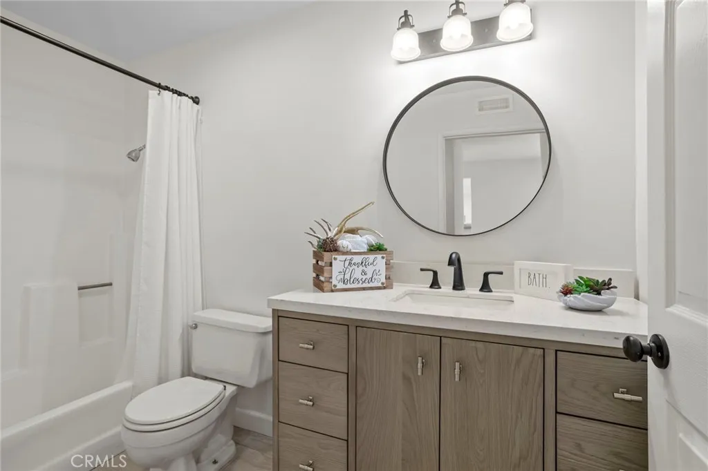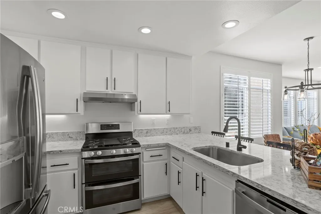Gorgeous home! Fantastic Views and best location in the complex!!! Natural lighting flows in from every window in this beautifully remodeled end unit. This 2 bedroom 2 bathroom home features dramatic views into the valley and mountains. Sit on the quiet and peaceful patio and enjoy the spectacular sunsets. Step into the beautiful living room with new flooring, new paint, white shutters covering all windows, a fantastic stone fireplace in the living room brings warmth and beauty to the home, custom glass shelving on either side of the fireplace provides a wonderful space to exhibit all of your treasures. The kitchen features stylish new counter tops with stainless steel appliances, a large recessed kitchen sink and a great kitchen bar seating for entertaining. The primary bedroom has a large slider to the rear patio and fantastic views of the mountains and valley. Washer/Dryer hookups are inside, lots of ample storage. This unit also includes a 1-car garage right next to the front doo, plus an additional carport for extra convience. Located in the highly sought after Terrace at Sierra Del Oro Community which is nestled at the foothills of the Cleveland National Forest. Walking distance to shopping, dining, schools, Sierra Del Pro Park and hiking trails. The complex is perfectly situated for access to the 91,241,15 and 71 Freeways as wells as the Metrolink stations. This beautifully remodeled unit is just what you have been searching for.