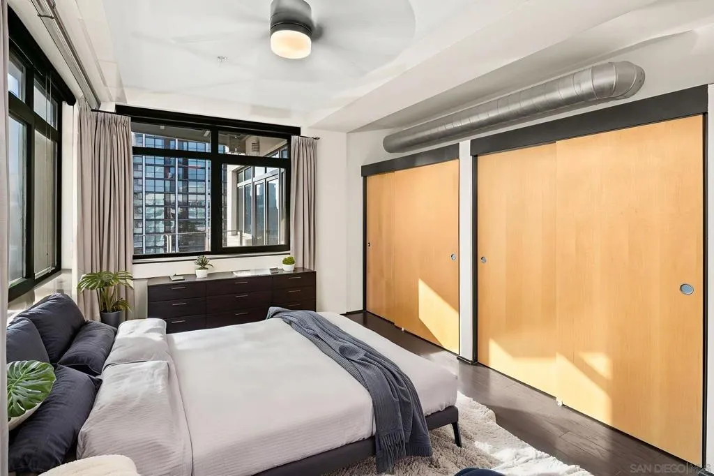 Experience sunsets and spectacular city views from your private balcony in the intimate and boutique Solara Lofts. Located in San Diego’s gem neighborhood of Cortez Hill this extra large, contemporary one bedroom boasts an open floorplan flooded with natural light, hardwood floors, and a large balcony to take in the San Diego skyline from the highest point in Downtown San Diego. The kitchen is complete with stainless steel appliances, ample storage, and a mobile island to customize the kitchen configuration to your needs. Enjoy all the incredible amenities at Solara Lofts including TWO parking spaces, fob-secured storage locker, pool/spa, racquetball court, gym, sauna, day spa, and massage room! Located in the vibrant Cortez Hill you are walking distance to top restaurant, bars and nightlife. Gated guest parking included and dogs allowed upon approval with additional deposit.