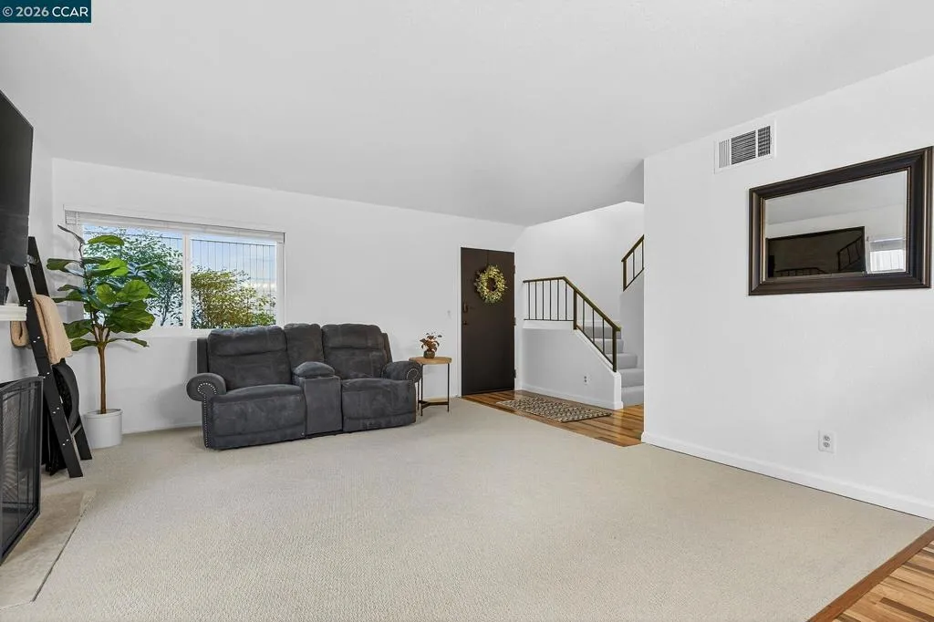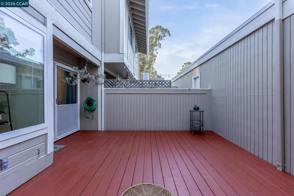 Welcome to 801 Orion, Unit 7, an inviting two-level Olympian Hills condo that blends comfort, convenience, and resort-style living in the desirable city of Hercules. Offering 2 bedrooms, 1.5 bathrooms, and 1,134 sqft, this thoughtfully designed condo offers a comfortable and functional layout great for everyday living or entertaining. The main level features a spacious living room complemented by a gas fireplace, fresh new carpet, double-pane windows, and a skylight over the staircase that brings in natural light. The kitchen flows nicely into the dining area, creating a comfortable and functional layout, with the dining space offering direct access to the private patio/deck—perfect for indoor-outdoor living. A convenient half bath and in-unit laundry complete the downstairs. Upstairs, you’ll find two well-sized bedrooms connected by a Jack-and-Jill-style bathroom with access from both the primary bedroom and hallway. The primary bedroom includes a walk-in closet and a separate double-sink vanity, offering added privacy and convenience. Enjoy the benefit of a two-car garage with direct access to your patio/deck. HOA amenities include three swimming pools, two hot tubs, and three tennis courts, with one pool and spa just a short walk away.