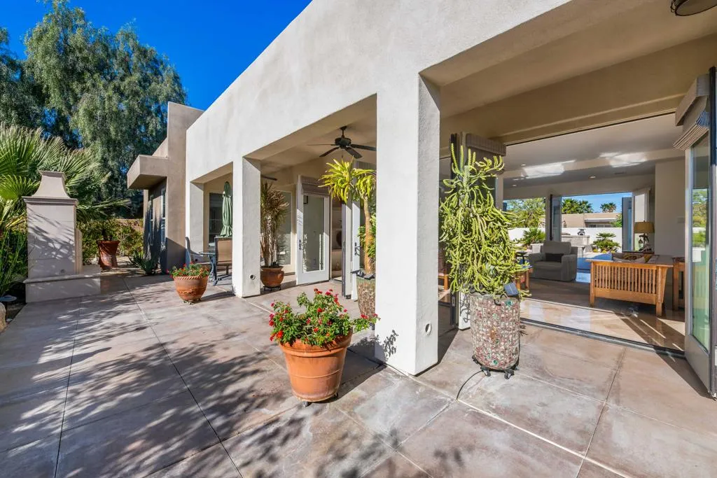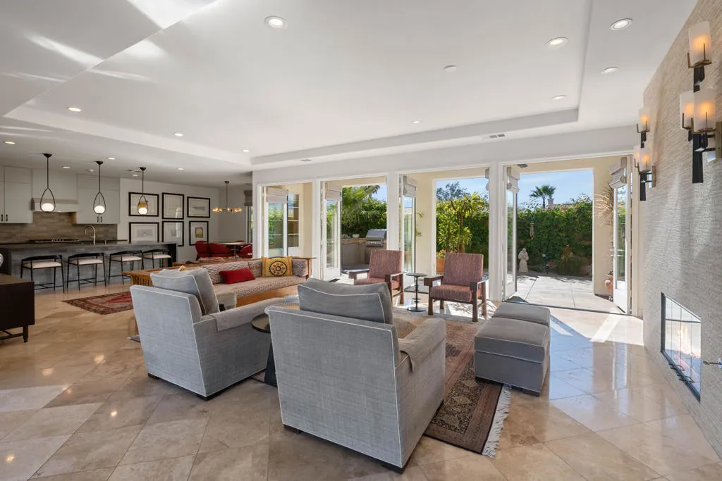 Sellers have now reduced the asking price for this luxury home and continue to be very motivated. It is a must see! A stunning contemporary property in the Enclave at Sunrise, a walled community of 52 luxury homes in beautiful Palm Springs. The extensively updated residence combines a very well-designed environment for both entertaining and daily living with many visually appealing elements of charm throughout. When first approaching the house one is greeted by a gated, walled and large private courtyard. On the way to the front entry visitors pass a beautiful saltwater swimming pool, spa and additional water features. Built in 2006, the home offers an inviting interior beginning with the great room and the visual impact of walls of French doors on two sides of the room that provide a source of light and indoor/outdoor desert living. The ceilings are all high throughout the house. The open concept floor plan includes 4 bedrooms, 4.5 bathrooms, 2 fireplaces (one outside) and a beautifully updated kitchen and bathrooms. The large kitchen island, new cabinets, new granite counters and backsplash, newer stainless steel appliances including double ovens, and large pantry make the kitchen an enjoyable hub of the house. The primary suite has so much to offer including a relaxing retreat area for unwinding with a good book or watching television, a large double entrance walk-in closet, a spa tub and beautiful view and easy access to the private courtyard with its water features and pool. Another ensuite bedroom as well as 2 others, all with pleasant views, are available for family and guests. One of the bedrooms is currently used as an attractive library/office. Newer custom shades (most automated) and drapes have been installed throughout the house. The attractively landscaped yard includes beautiful mountain views, citrus trees, a fireplace and outdoor kitchen. The extensive list of updates since 2022 also includes 2 new ac units and furnaces, water heater and a water softener. The total costs of all updates from 2022 through 2025 is over $260,000. The lists of all improvements and the maintenance summary and updates for pool, spa and fountain are available. With all of these updates already completed, and partially furnished per inventory, this elegant residence is move-in ready awaiting the new owners.