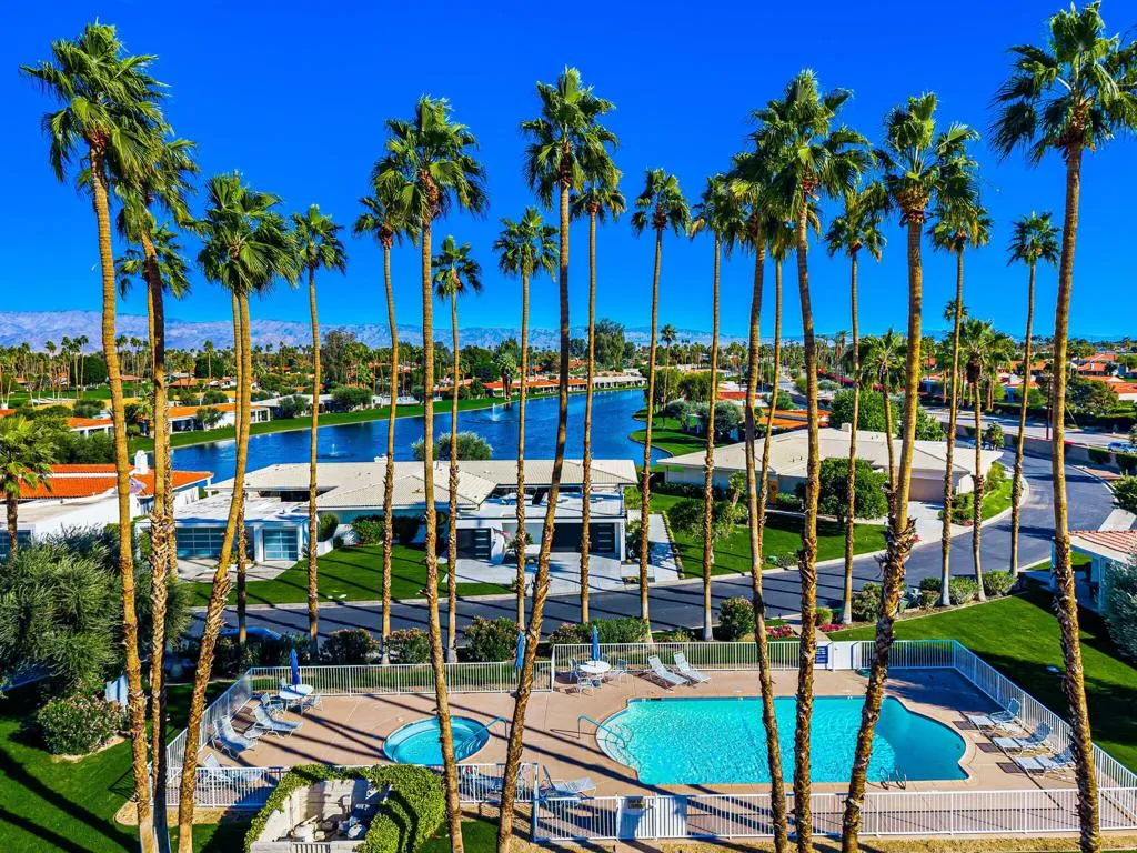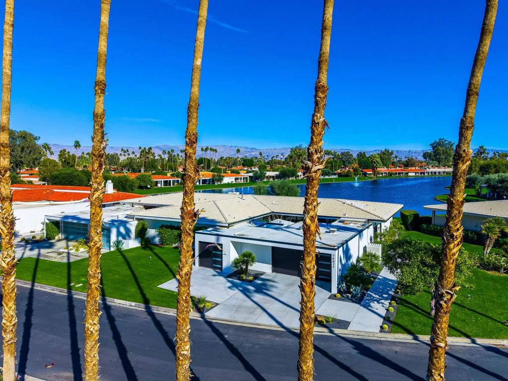 Luxurious lake front condo, nestled in the prestigious Lago La Quinta neighbhood at La Quinta Country Club, home of the PGA Tour AMEX tournament! Remodeled to perfection with attention to every detail and a modern vibe that brings a sense of calm. Endless views paint an ever changing backdrop to your living experience here in Lago. Luminous and light living area and dining room, which flow gracefully into the media room with custom bar. Two large primary suites; one with an added sleeping space with bunk beds for kids or grandkids. Chefs Kitchen with Bosch stainless steel appliance package. Quartz countertops in kitchen, bar area, and all the bathrooms.Beautiful floor to ceiling Fleetwood sliders & windows. New oversized tile flooring, new tile backsplash in kitchen and showers. New exterior custom BBQ includes Alfresco Grill, 2 Burners, True beverage center, sink and new granite. Located in the heart of La Quinta, close to the La Quinta Resort, and Old Town La Quinta, shopping, dining, golf, tennis, and hiking. Many more upgrades, list available upon request. Call or text for a private tour. Buyer to verify all information and dimensions.