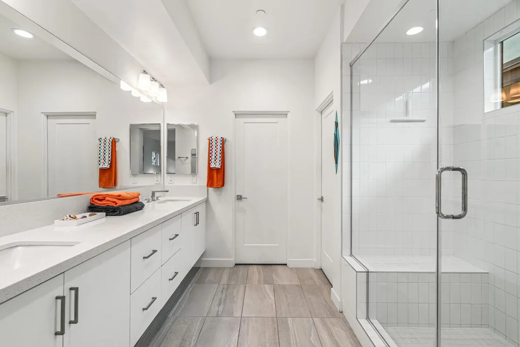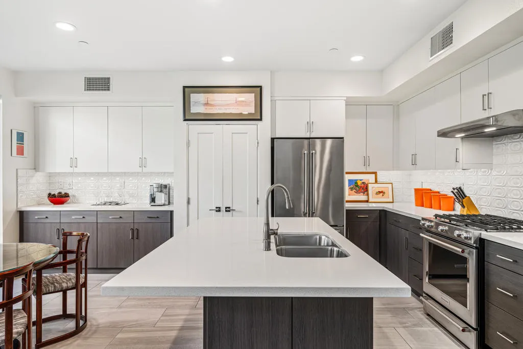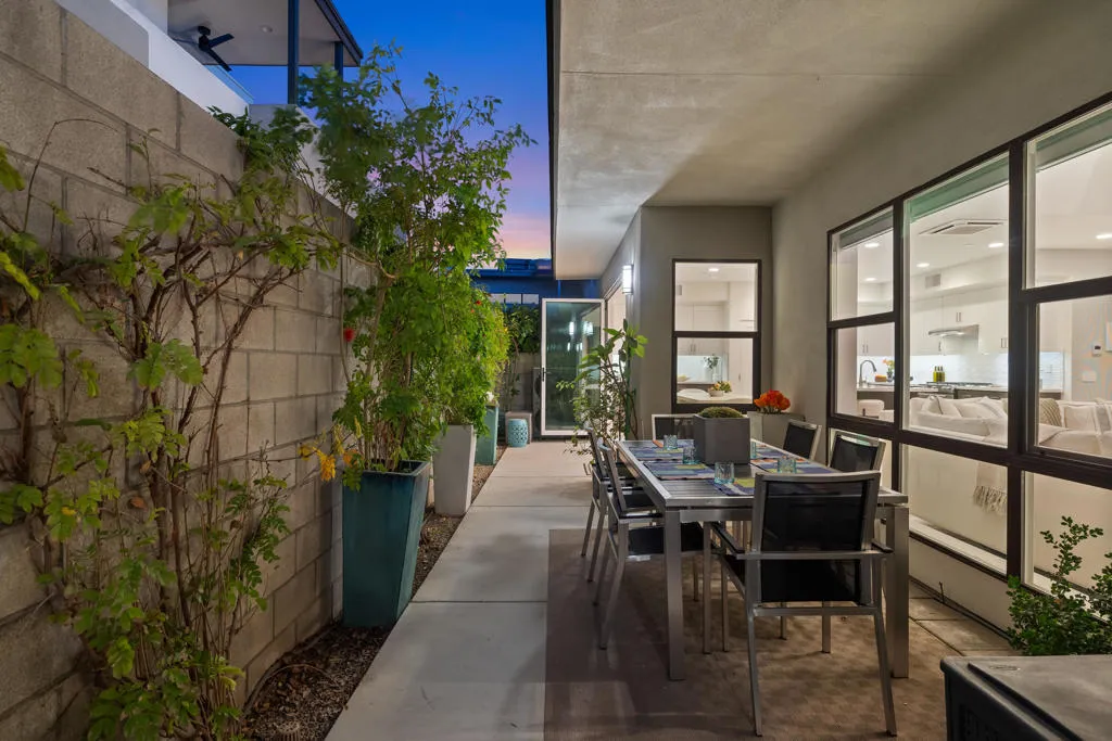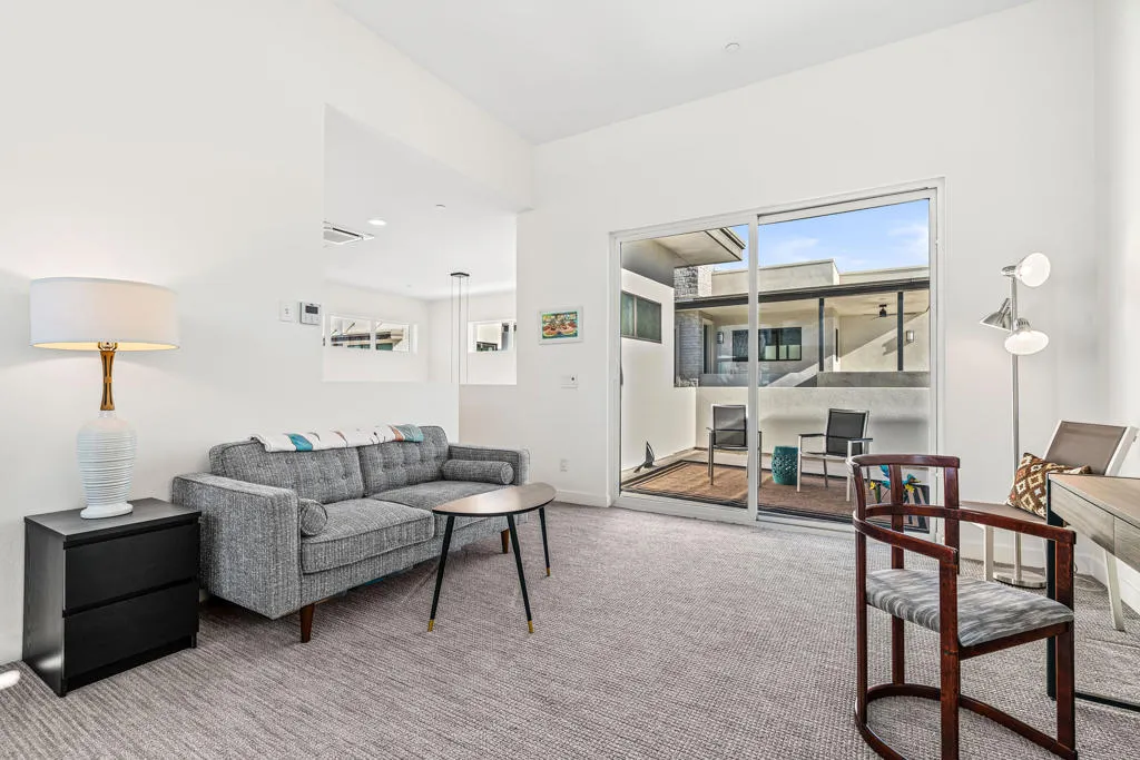 Best value in the Vibe! This desirable standalone residence offers the ease of maintenance-free condo living with the privacy and feel of a single-family home. Light and bright throughout, this 3-bedroom, 3-bath home is highlighted by soaring ceilings that create a dramatic sense of space and openness. The tastefully updated gourmet kitchen features quartz countertops, designer backsplash, and opens seamlessly to the spacious dining and living areas. Fully retractable folding doors extend the living space outdoors, creating the ideal setting for entertaining. The professionally landscaped backyard offers a serene, Zen-like atmosphere with ample room for relaxation and conversation. The main-level primary suite is a true retreat, complete with a spa-inspired bath and oversized walk-in closet. Also conveniently located on the main level are a guest bedroom and bathroom, along with a spacious laundry room. Upstairs, an expansive loft provides a versatile bonus area perfect for a media room, home office, or gym and opens to an oversized balcony for additional outdoor enjoyment. A well-appointed second primary ensuite bedroom completes the upper level, featuring a spa-like bath and walk-in closet. Notable upgrades include owned solar, an attached two-car garage with frosted glass door, tankless water heater, and abundant storage. Community amenities include a large, heated pool and spa with sun deck, clubhouse and gathering area with outdoor grill, two dog parks, electric vehicle charging, and bocce ball courts.