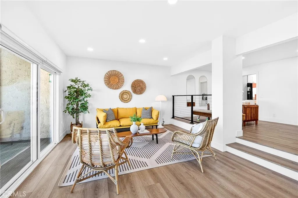 The main level features an open living space designed for both comfort and flow.The kitchen has been updated with quartz countertops and clean, modern finishes, opening directly to the dining area for easy entertaining. Outdoor living includes a private balcony along with a rear patio, each offering inviting spaces for morning coffee or evening downtime while enjoying the surroundings. The second level is dedicated to the bedrooms and includes a den suitable for conversion into a third bedroom or a home office. A washer and dryer are conveniently located on this floor. Additional highlights include dual-pane windows, a 2-car garage, ample guest parking, and thoughtful upgrades throughout.