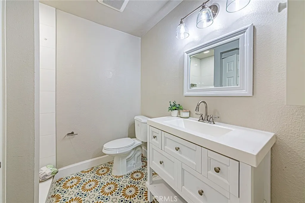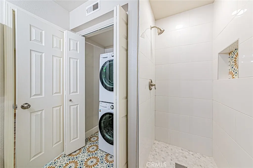 The luxuriously remodeled kitchen showcases quartz countertops, stainless steel appliances, and custom cabinetry, offering both elegance and functionality for everyday living and entertaining. The spacious primary suite features a walk-in closet and a beautifully remodeled en-suite bathroom. The secondary bedroom is generously sized with convenient access to the hallway bathroom.