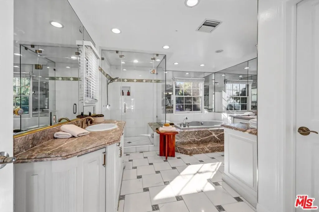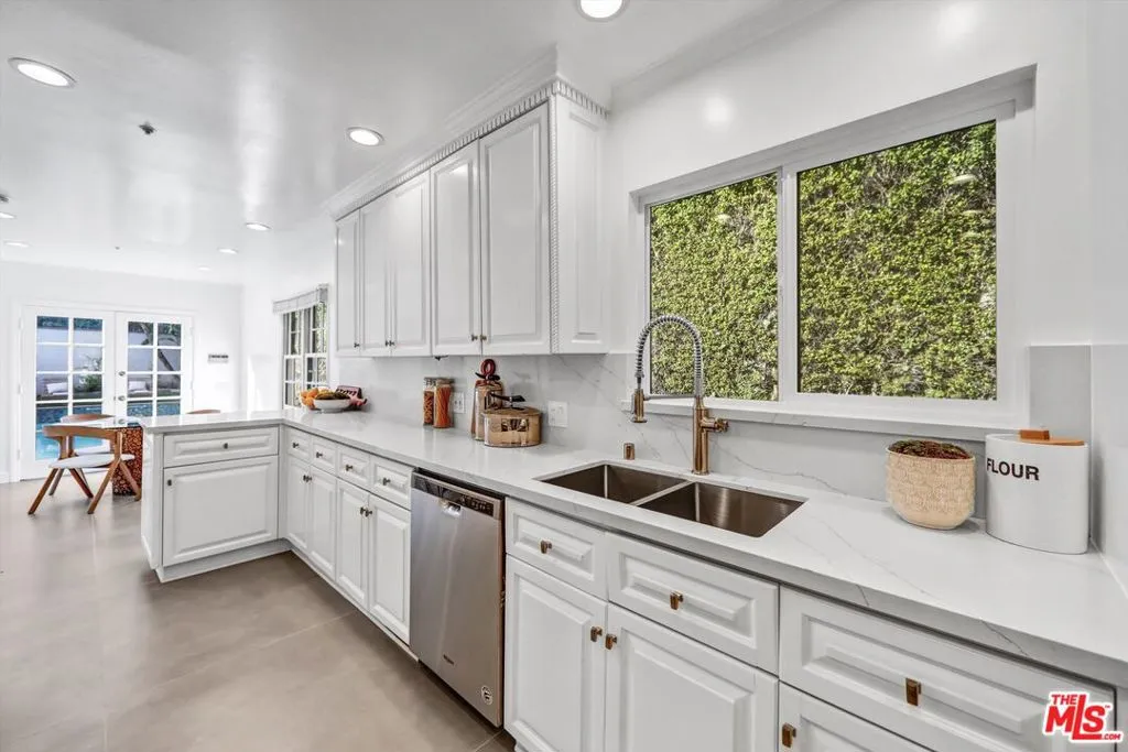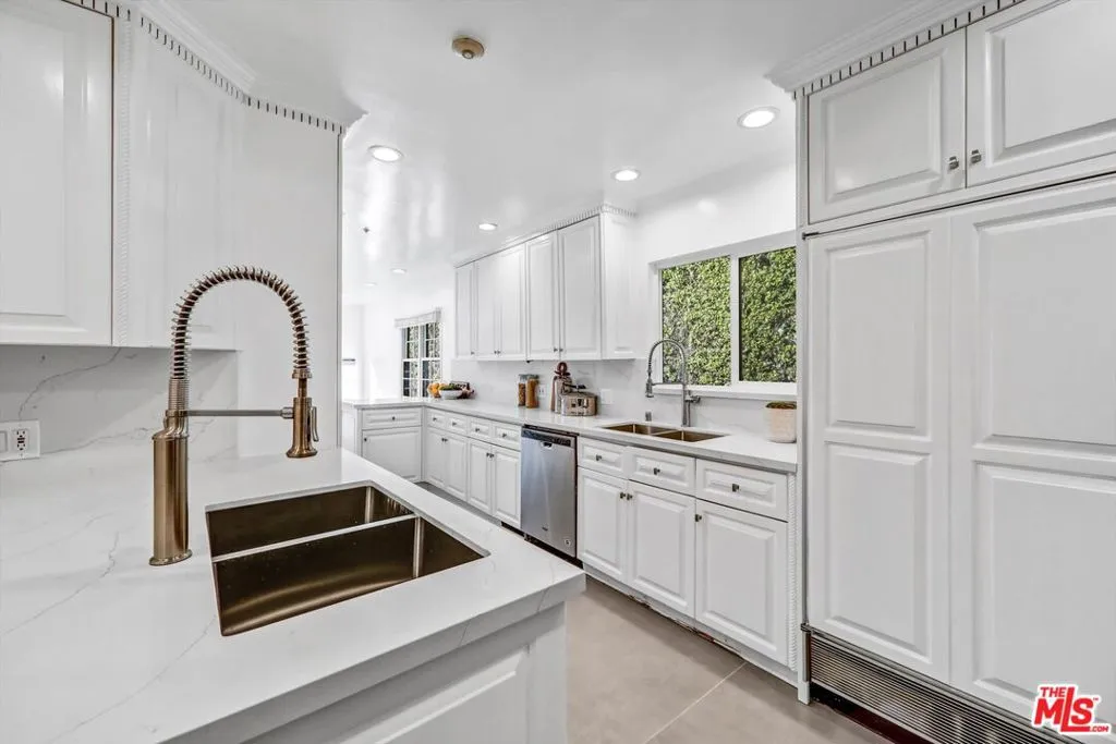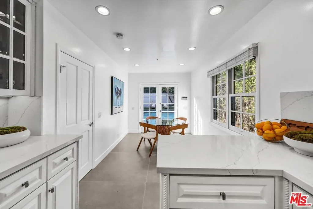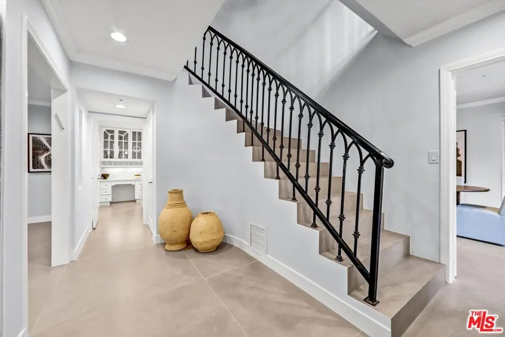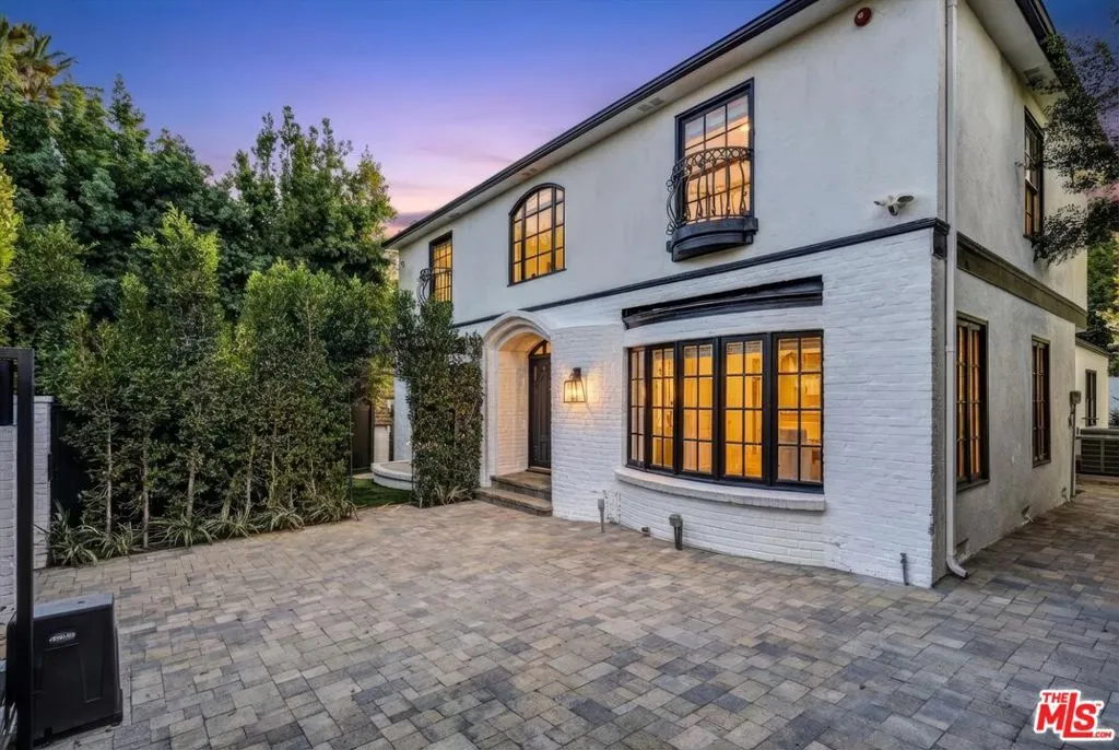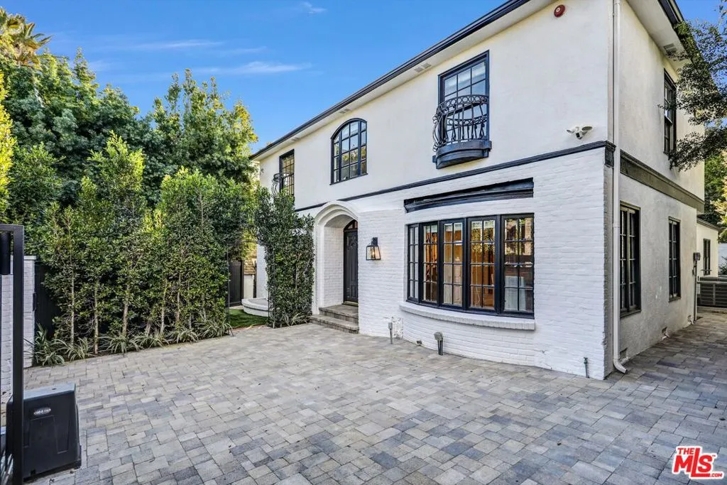 This beautifully remodeled two story traditional residence is set behind gates in the heart of Beverly Hills, offering privacy, security, and timeless curb appeal with a striking black and white exterior. A charming front yard and walkway lead to a grand entry, where a sweeping staircase immediately sets the tone.Inside, the home blends classic architecture with thoughtful modern updates. The formal living room and separate family room each feature newly installed fireplaces, creating inviting spaces for both entertaining and everyday living. A dedicated dining room comfortably accommodates a table for eight to ten, perfect for hosting gatherings both formal and casual.The kitchen has been fully remodeled with state of the art appliances, dual sinks, new countertops, and abundant storage. A sunny breakfast nook just off the kitchen provides a relaxed spot for morning coffee or informal meals.Upstairs, the primary suite is a true retreat, complete with its own fireplace, a generous walk in closet, and a spa like bathroom featuring a soaking tub and an oversized shower. Two additional upstairs bedrooms are generously sized and share a well appointed bathroom. Downstairs, a separate bedroom with its own bathroom offers ideal flexibility for guests, staff quarters, or a private office.The outdoor spaces are equally impressive. Both the front and backyard have been fully landscaped, with a brand new pool and spa creating a serene setting for relaxation and entertaining. The garage has been converted into a stylish pool house or bonus space with a closet and full bathroom, perfect for guests, a home office, or a private retreat. Ample gated parking provides space for two to four vehicles.
